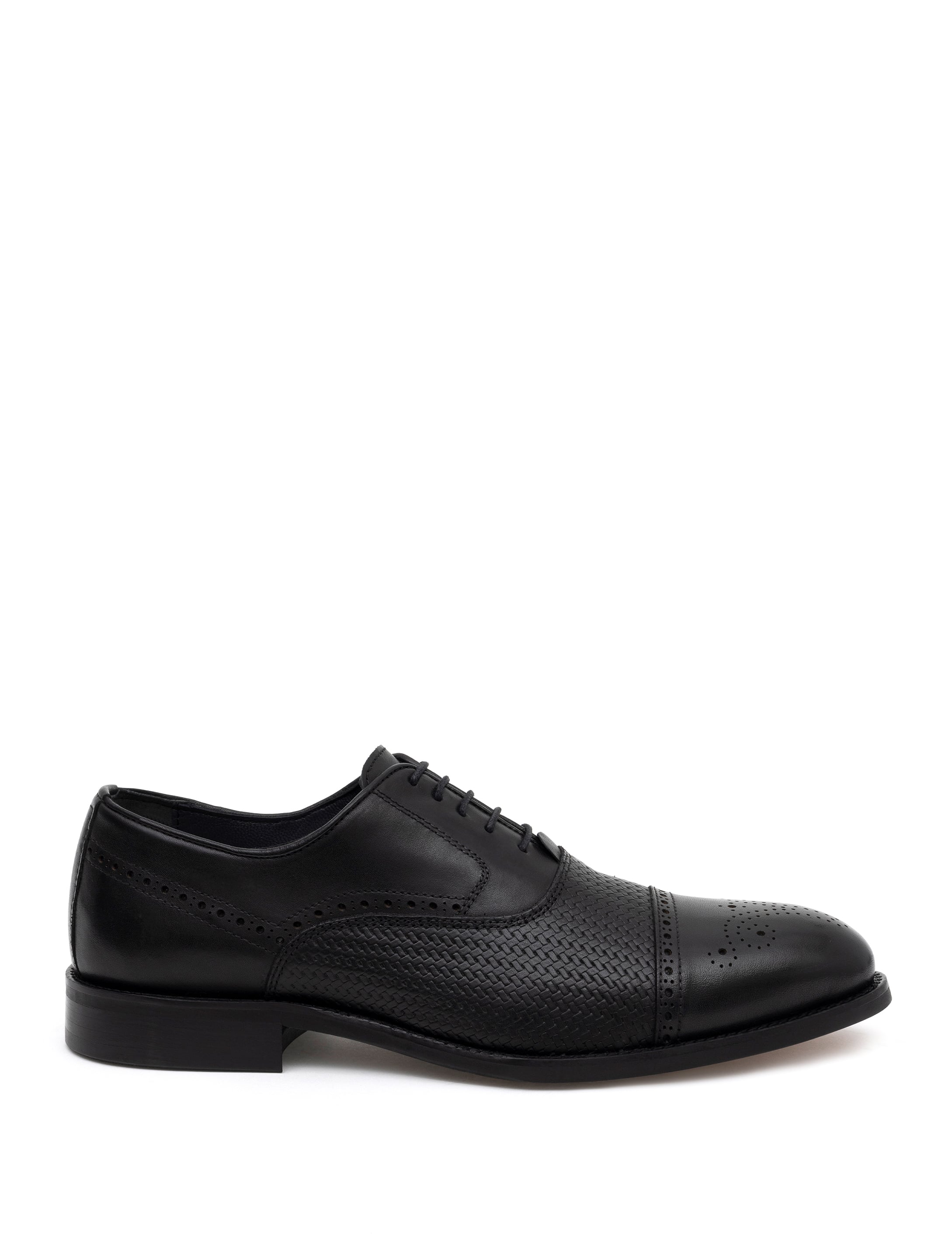 Ayrıca, tabanın kaymaz yapısı güvenli bir kullanım sağlar ve her türlü zeminde rahat bir yürüyüş sunar. Ayakkabının burun kısmında ve yan yüzeylerinde yer alan ince işçilik, ayakkabıyı sıradan bir deri ayakkabıdan ayırarak özel kılıyor. Siyah rengin asilliği ile buluşan dokulu deri, ayakkabıyı zamansız bir klasik haline getiriyor.