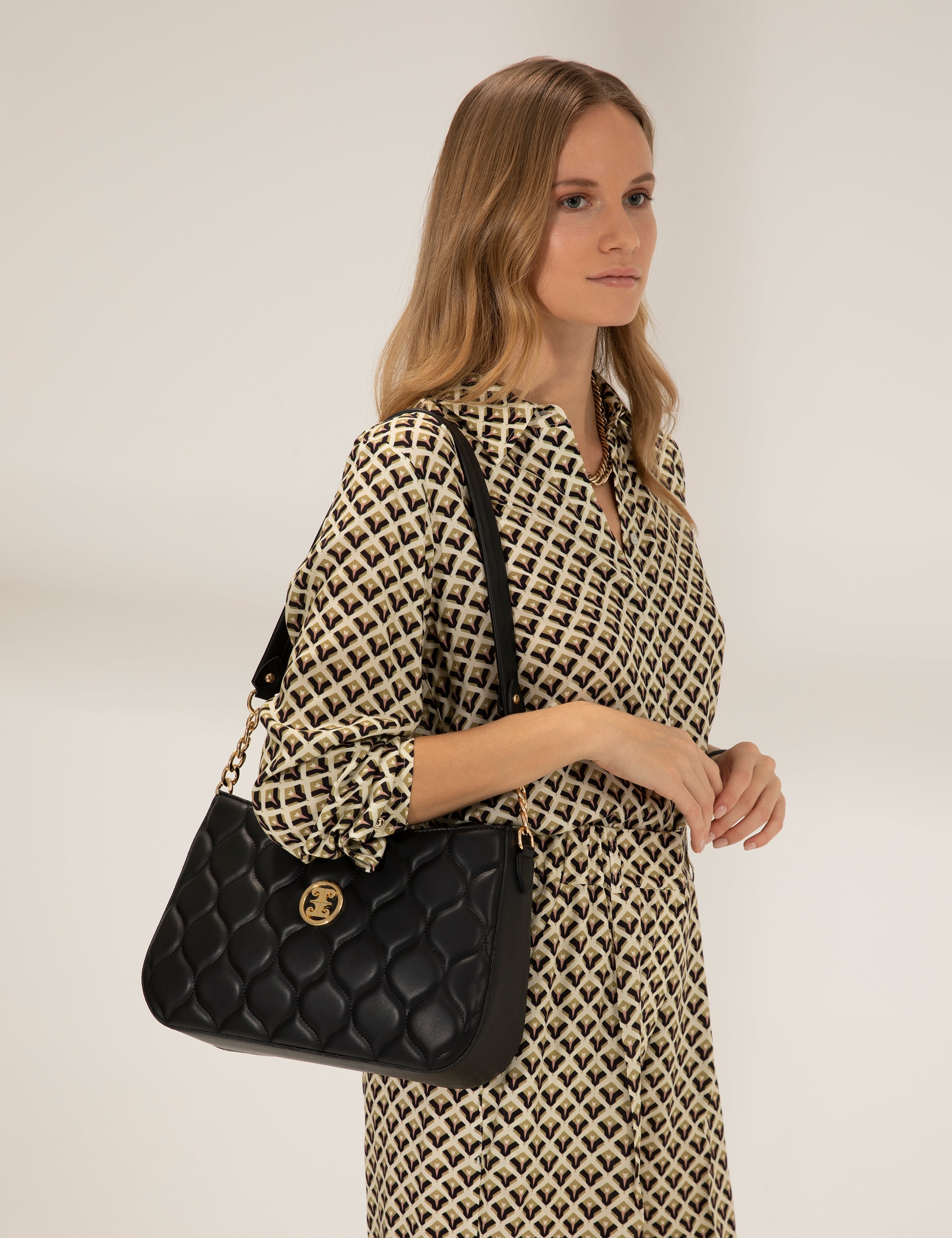 Zincir detaylı omuz askısı mevcuttur.; Genişlik x Yükseklik x Derinlik: 30x19x9 cm'dir.; Fermuarlı kapama özelliğine sahiptir.; İçerisinde 1 adet fermuarlı iç cep bulunmaktadır.; Telefon vb. eşyaları koymak için 1 adet fermuarsız iç cep bulunmaktadır.; Suni deri malzemeden üretilmiştir.; Pierre Cardin yazılı özel saklama kılıfı çanta içerisinde mevcuttur.; 2 yıl garantilidir.; Türkiye'de üretilmiştir.