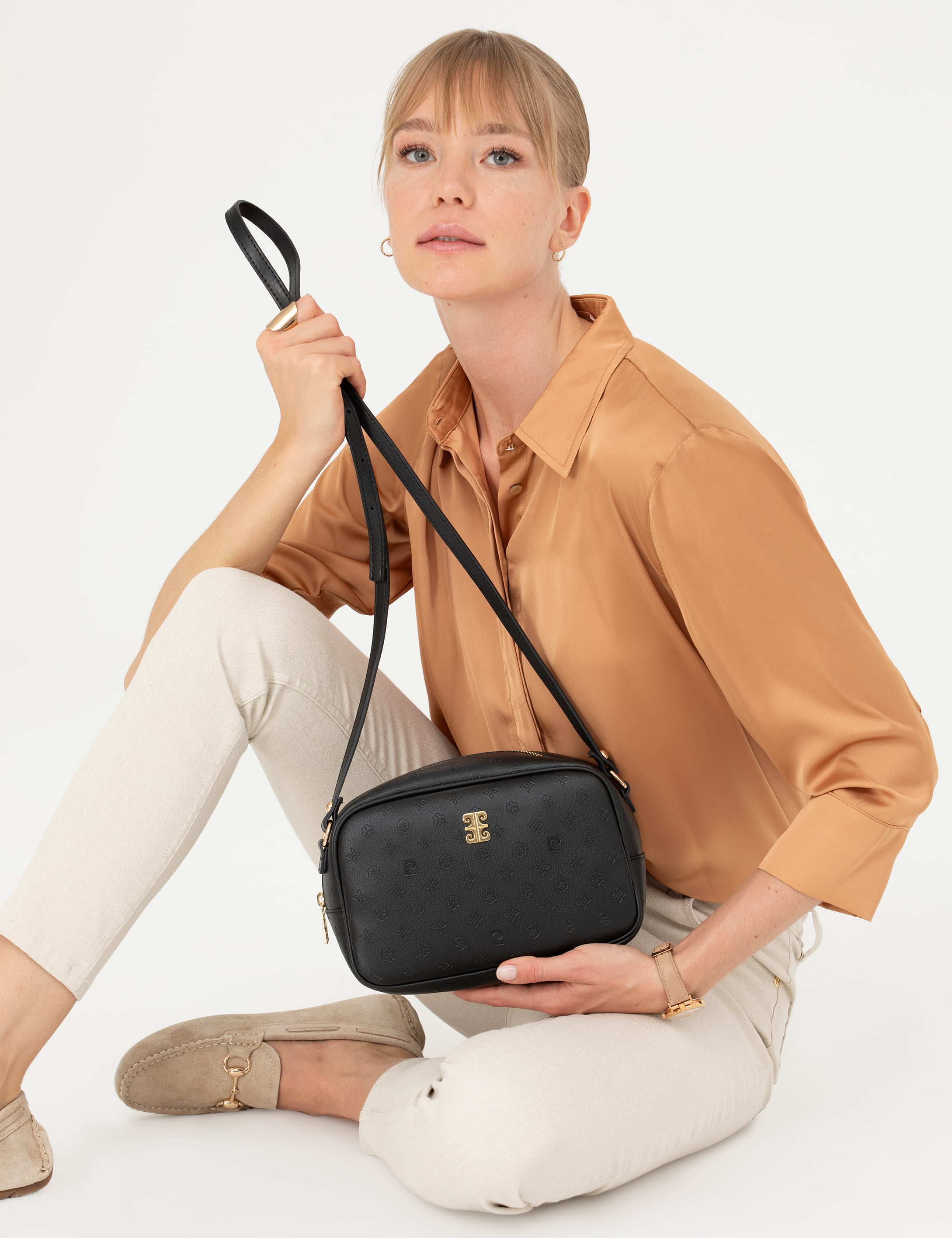 Ayarlanabilir uzun omuz askı mevcuttur.; Genişlik x Yükseklik x Derinlik: 24x17x10 cm'dir.; Fermuarlı kapama özelliğine sahiptir.; İçerisinde 1 adet fermuarlı iç cep bulunmaktadır.; Telefon vb. eşyaları koymak için 1 adet fermuarsız iç cep bulunmaktadır.; Suni deri malzemeden üretilmiştir.; Pierre Cardin yazılı özel saklama kılıfı çanta içerisinde mevcuttur.; 2 yıl garantilidir.; Türkiye'de üretilmiştir.