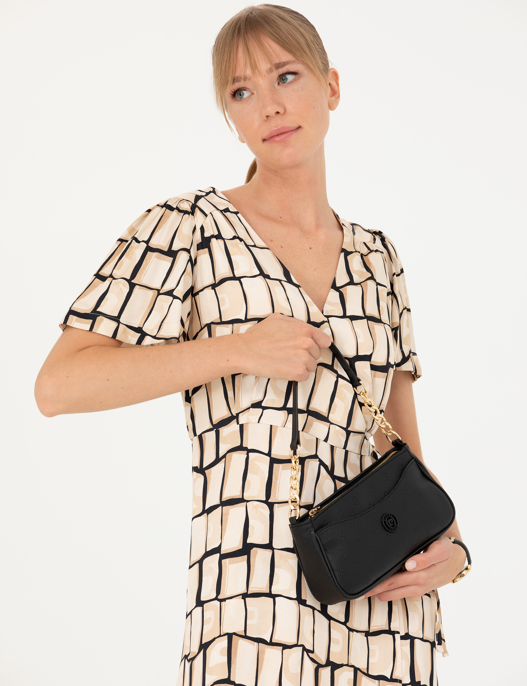 Zincir detaylı omuz askısı mevcuttur.; Genişlik x Yükseklik x Derinlik: 23x13x6 cm'dir.; Fermuarlı kapama özelliğine sahiptir.; Ön kısmında fermuarsız bölüm bulunmaktadır.; İçerisinde 1 adet fermuarlı iç cep bulunmaktadır.; Telefon vb. eşyaları koymak için 1 adet fermuarsız iç cep bulunmaktadır.; Suni deri malzemeden üretilmiştir.; Pierre Cardin yazılı özel saklama kılıfı çanta içerisinde mevcuttur.; 2 yıl garantilidir.; Türkiye'de üretilmiştir.