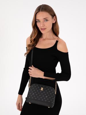 Ayarlanabilir zincir detaylı uzun askı mevcuttur. Genişlik x Yükseklik x Derinlik: 23x18x10 cm'dir. Fermuarlı kapama özelliğine sahiptir. İçerisinde 1 adet fermuarlı iç cep bulunmaktadır. Telefon vb. eşyaları koymak için 1 adet fermuarsız iç cep bulunmaktadır.