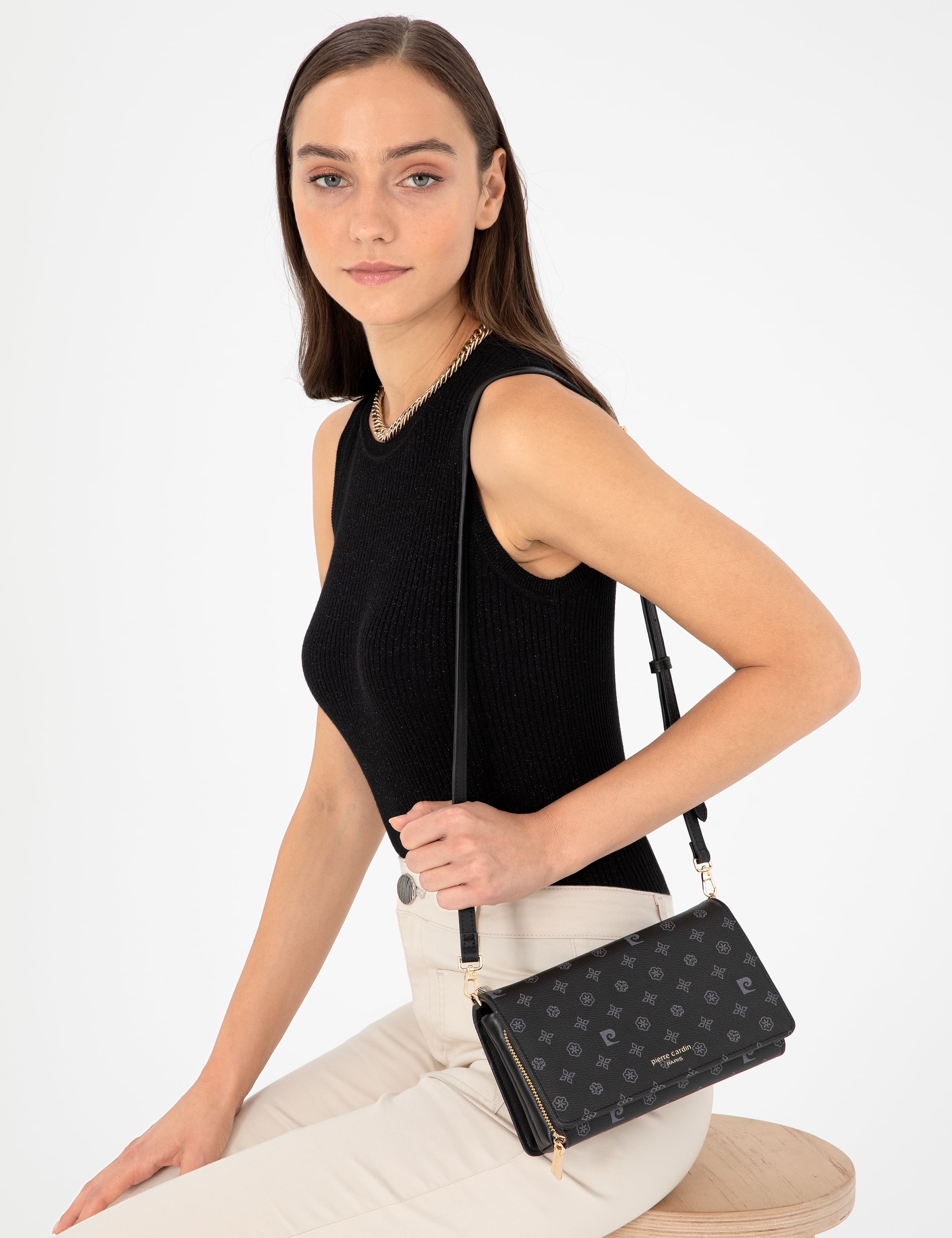 Ayarlanabilir ve çıkarılabilir uzun askı mevcuttur. Genişlik x Yükseklik x Derinlik: 20x13x3 cm'dir. Mıknatıslı ve fermuarlı kapama özelliğine sahiptir. Arka kısmında çıtçıtlı bölme mevcuttur. İçerisinde 3 adet kartlık bölme bulunmaktadır. Telefon vb. eşyaları koymak için 2 adet fermuarsız iç cep bulunmaktadır. Suni deri malzemeden üretilmiştir.