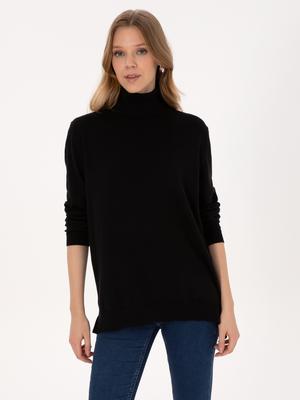 - Siyah Comfort Fit Tam Balıkçı Yaka Basic Kazak