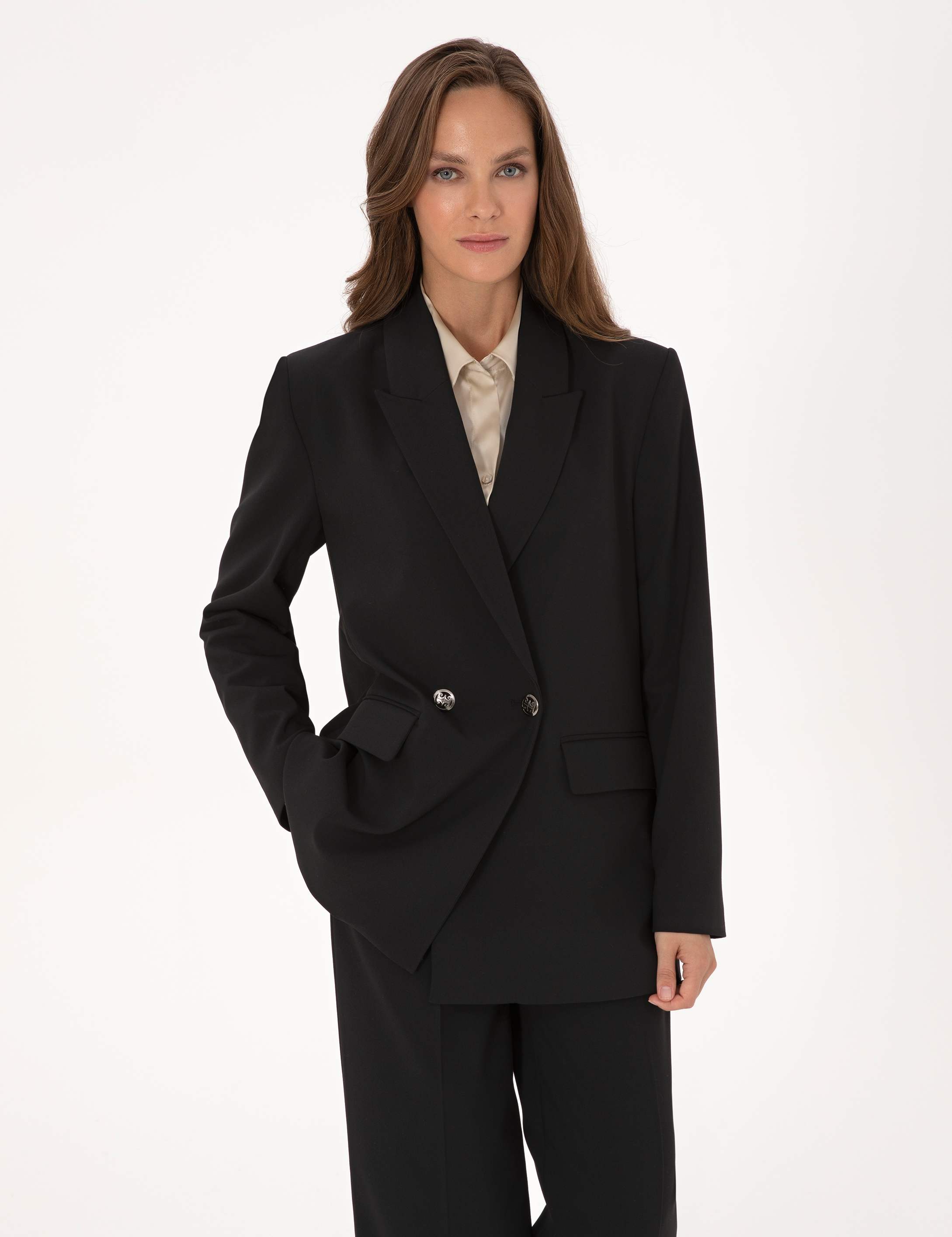 Siyah Comfort Fit Kruvaze Ceket