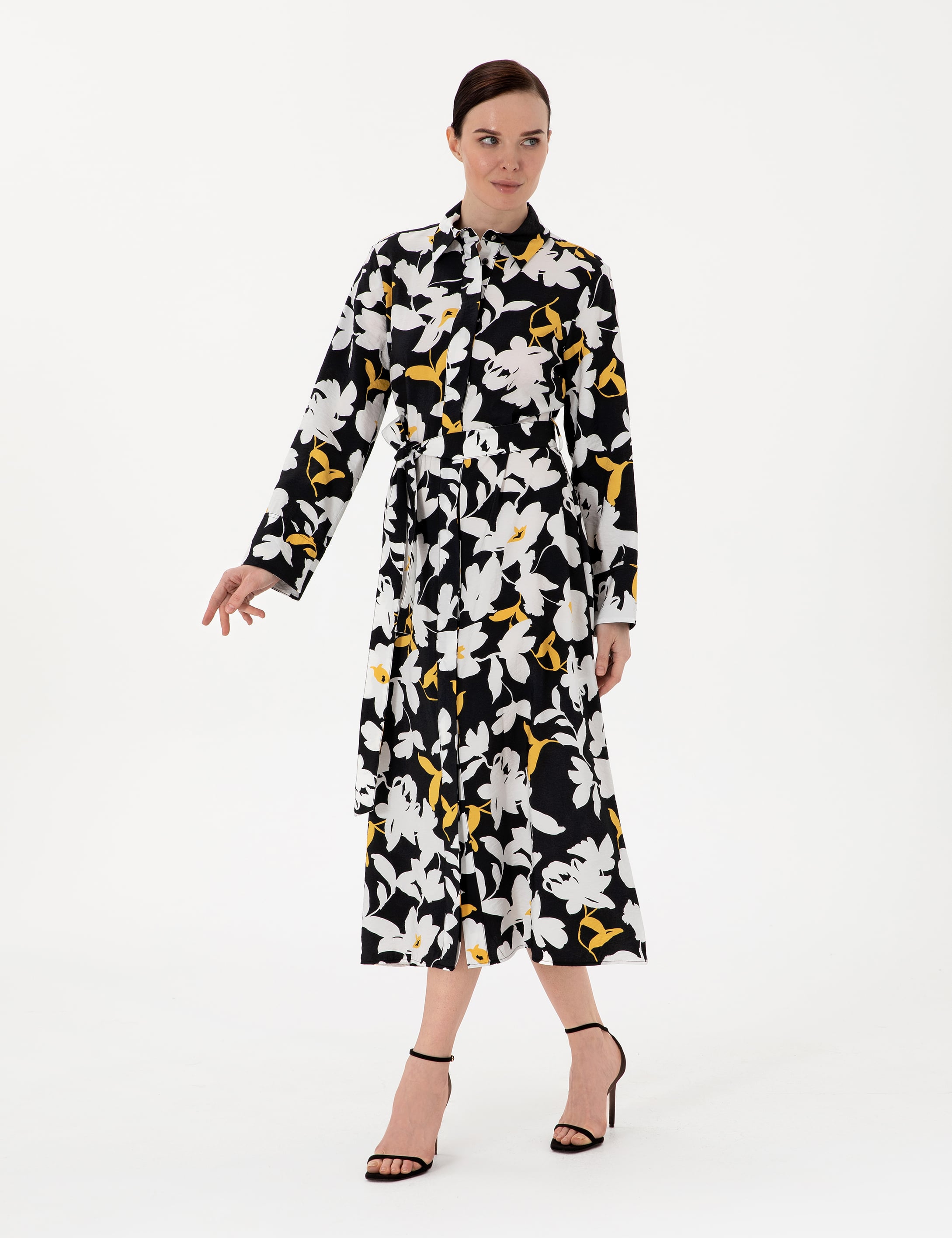 Siyah Comfort Fit Dokuma Elbise