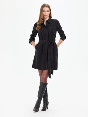 Siyah Comfort Fit Dokuma Elbise