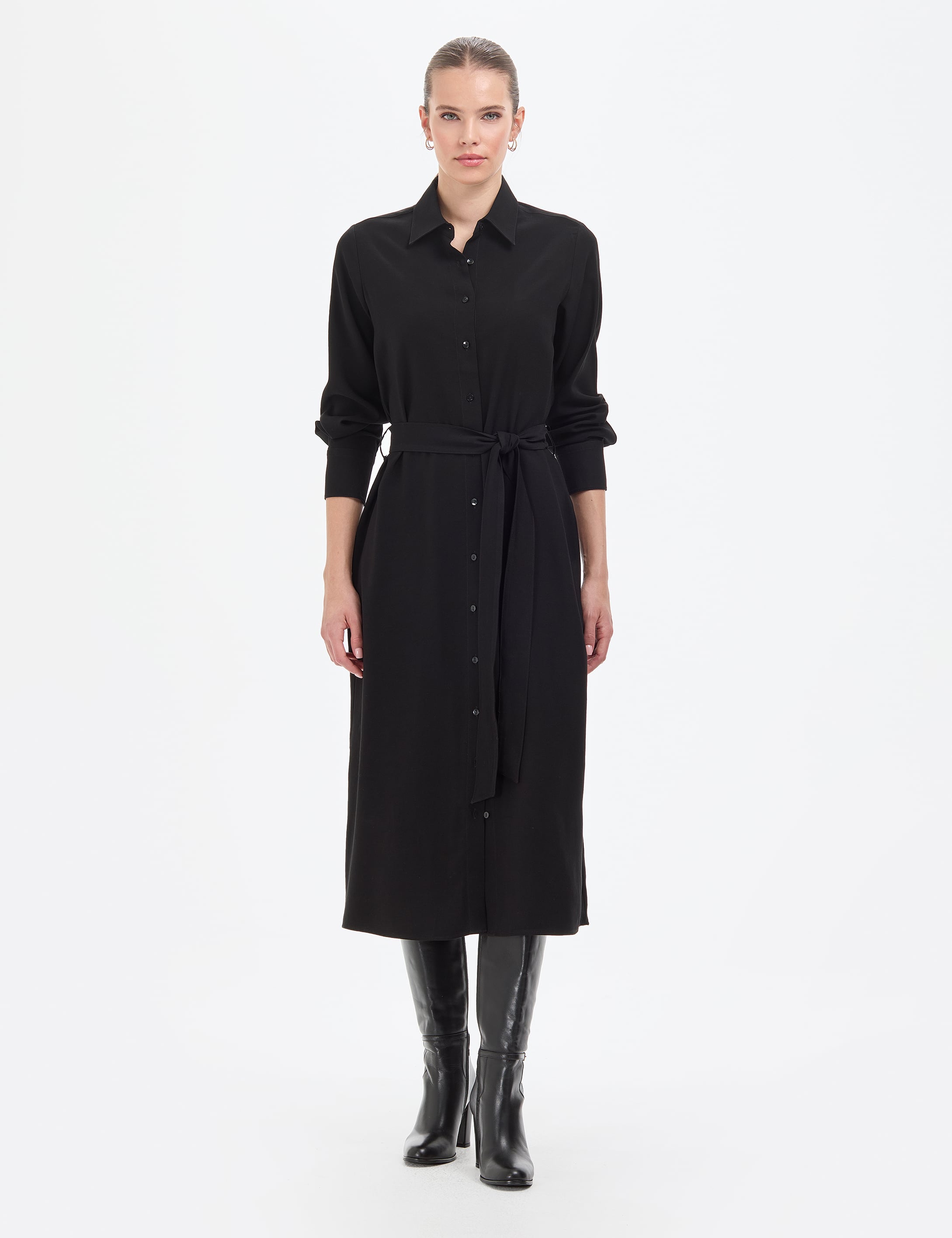 Siyah Comfort Fit Dokuma Elbise