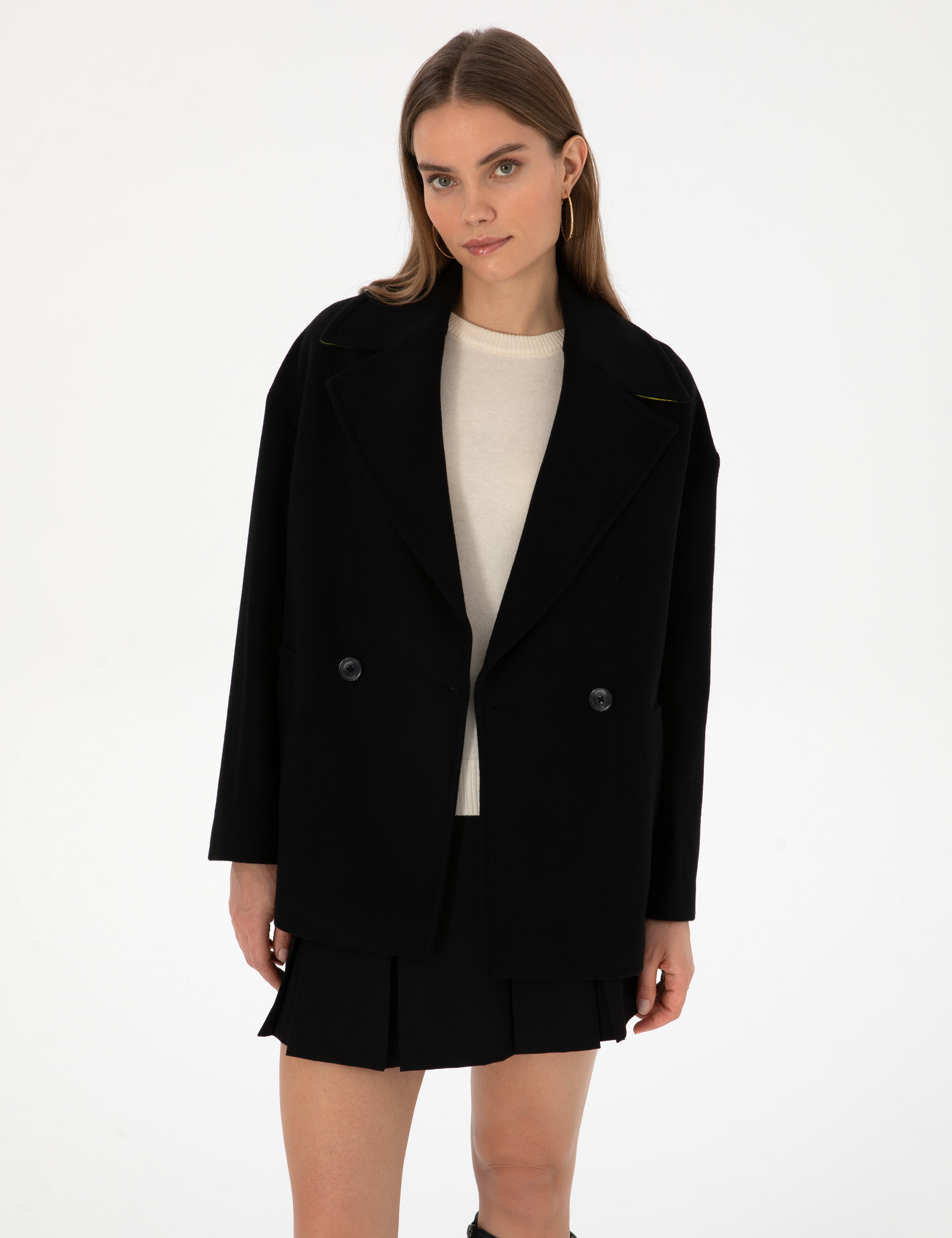 Siyah Comfort Fit Kaşe Kaban
