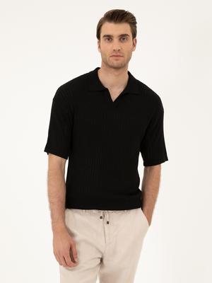Siyah Comfort Fit Polo Yaka Triko Tişört
