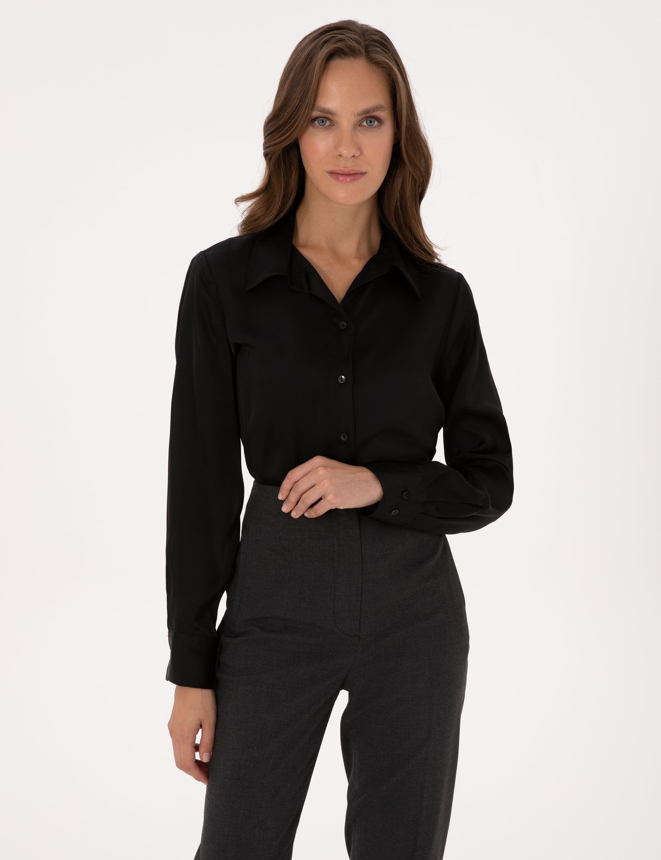 - Siyah Comfort Fit Uzun Kollu Gömlek