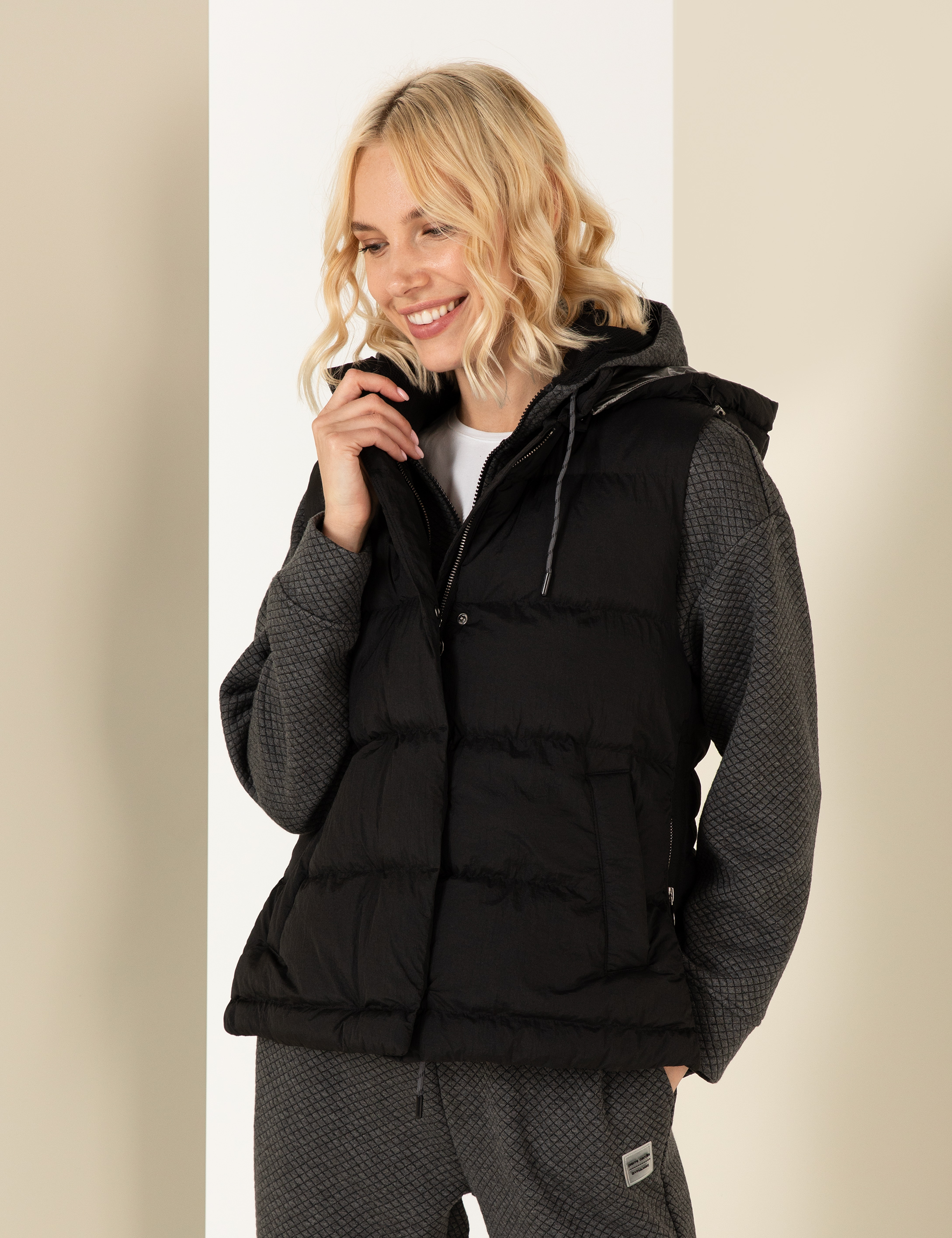 Siyah rengin sunduğu kombin kolaylığı ile spor şıklığı bir araya getiren yelek, fermuarlı cepleriyle pratiklik sunuyor. Kapüşon detayı, soğuk ve rüzgarlı günlerde ekstra koruma sağlar. Kumaşın suya dayanıklı yapısı sayesinde hafif yağışlı havalarda da kullanabilirsiniz. Yumuşak dokusu soğuk günlerde sıcak tutarken hafifliği ile sizi rahatsız etmez. İç astarı sayesinde soğuğu geçirmez, vücudunuzu sararak şıklığınızı korur.