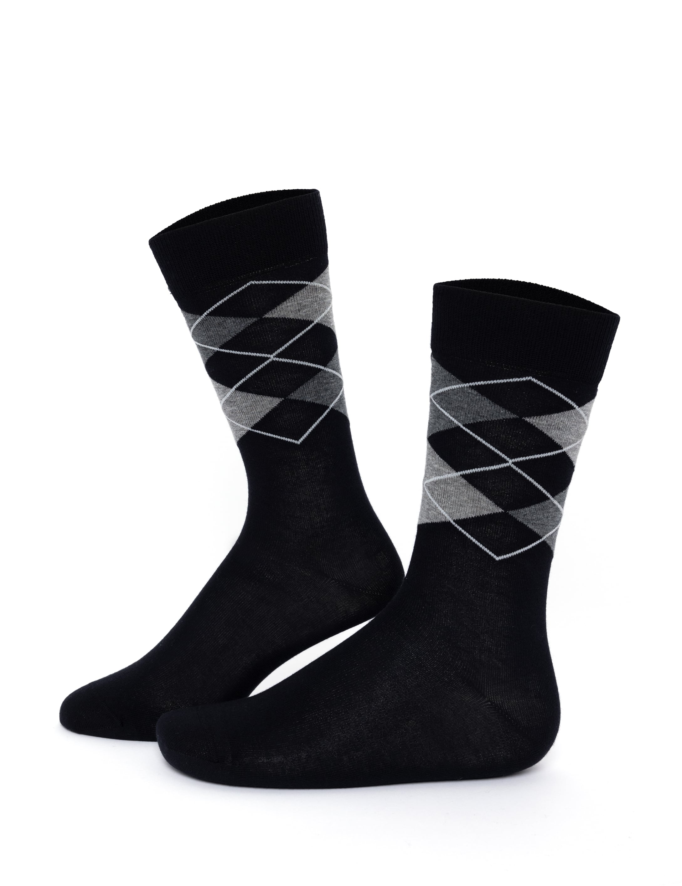 Erkek Pamuk Karışımlı Siyah Soket Desenli Çorap