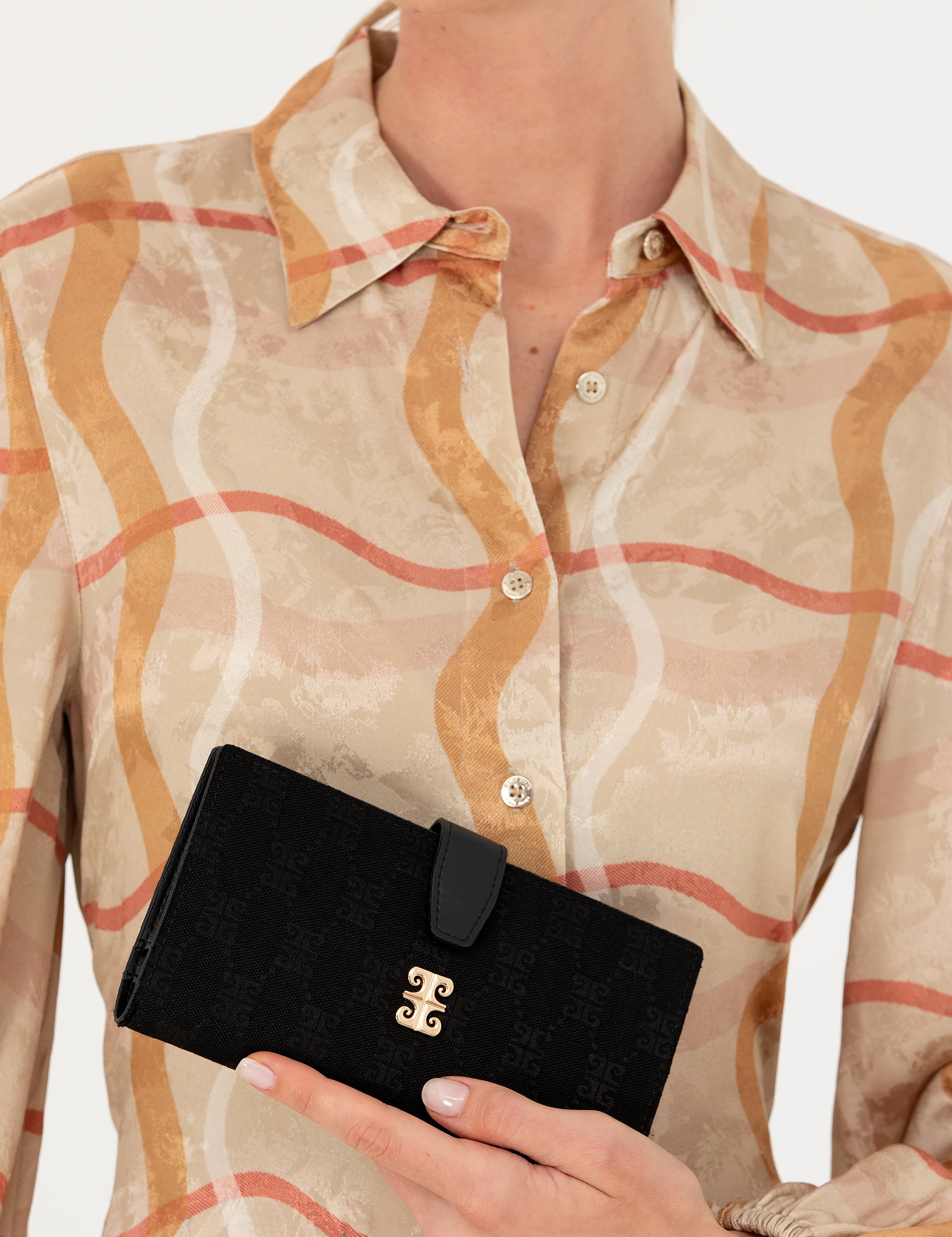 Çıtçıtlı kapama özelliğine sahiptir.Genişlik x Yükseklik x Derinlik: 19x10x3 cm'dir. İçerisinde 2 adet bölmesi vardır. Orta kısmında kapaklı göz bulunmaktadır. 6 adet kartlık yeri vardır.
