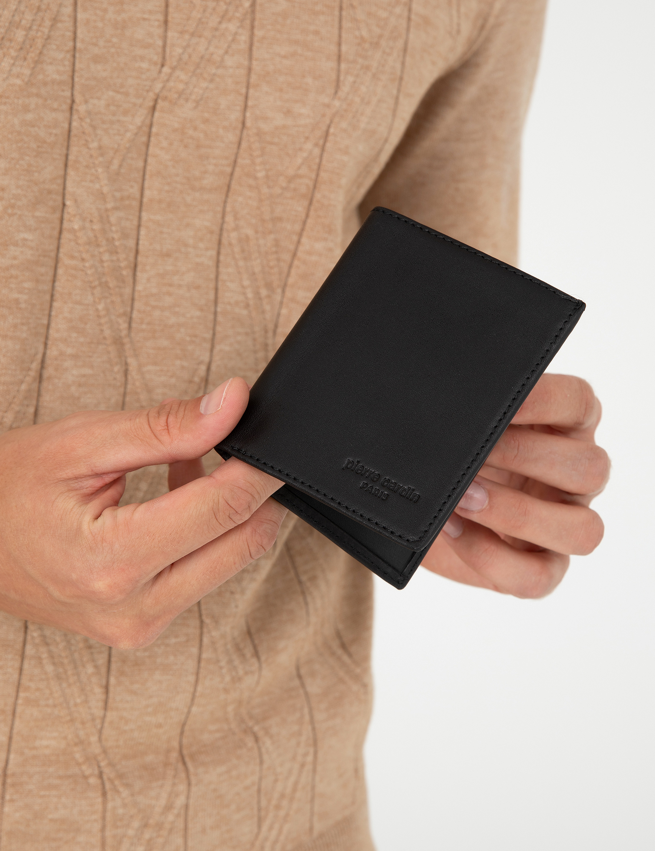 Pierre Cardin erkek cüzdan modelinde 9 adet kart bölmesi, 1 adetkimlik/kart bölmesi ve 2 adet kağıt para bölmesi mevcuttur.