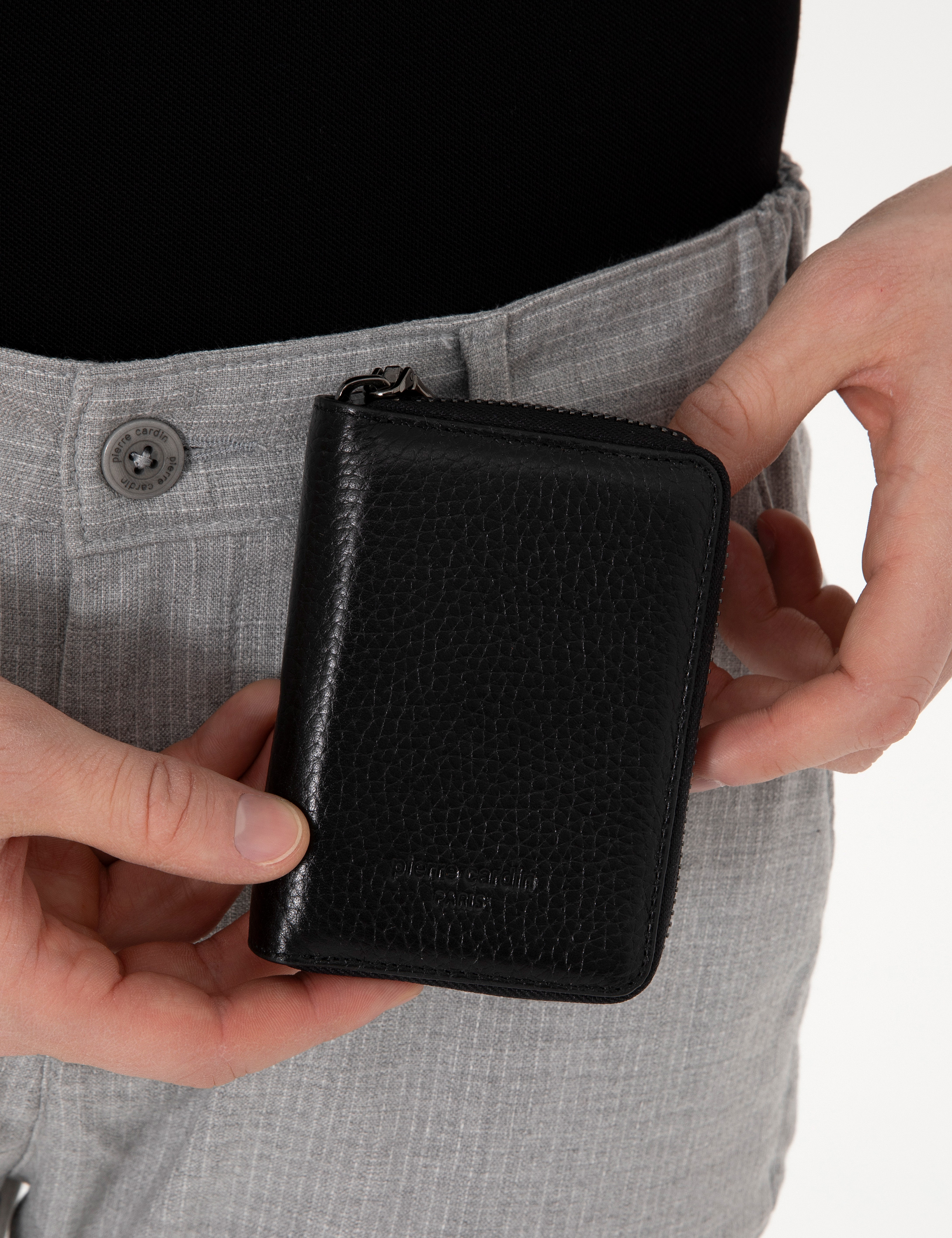 Pierre Cardin erkek cüzdan modelinde 10 adet kart bölmesi, 3 adet cep bölmesi, 1 adet kağıt para bölmesi ve 1 adet şeffaf kimlik/ehliyet bölümü mevcuttur.