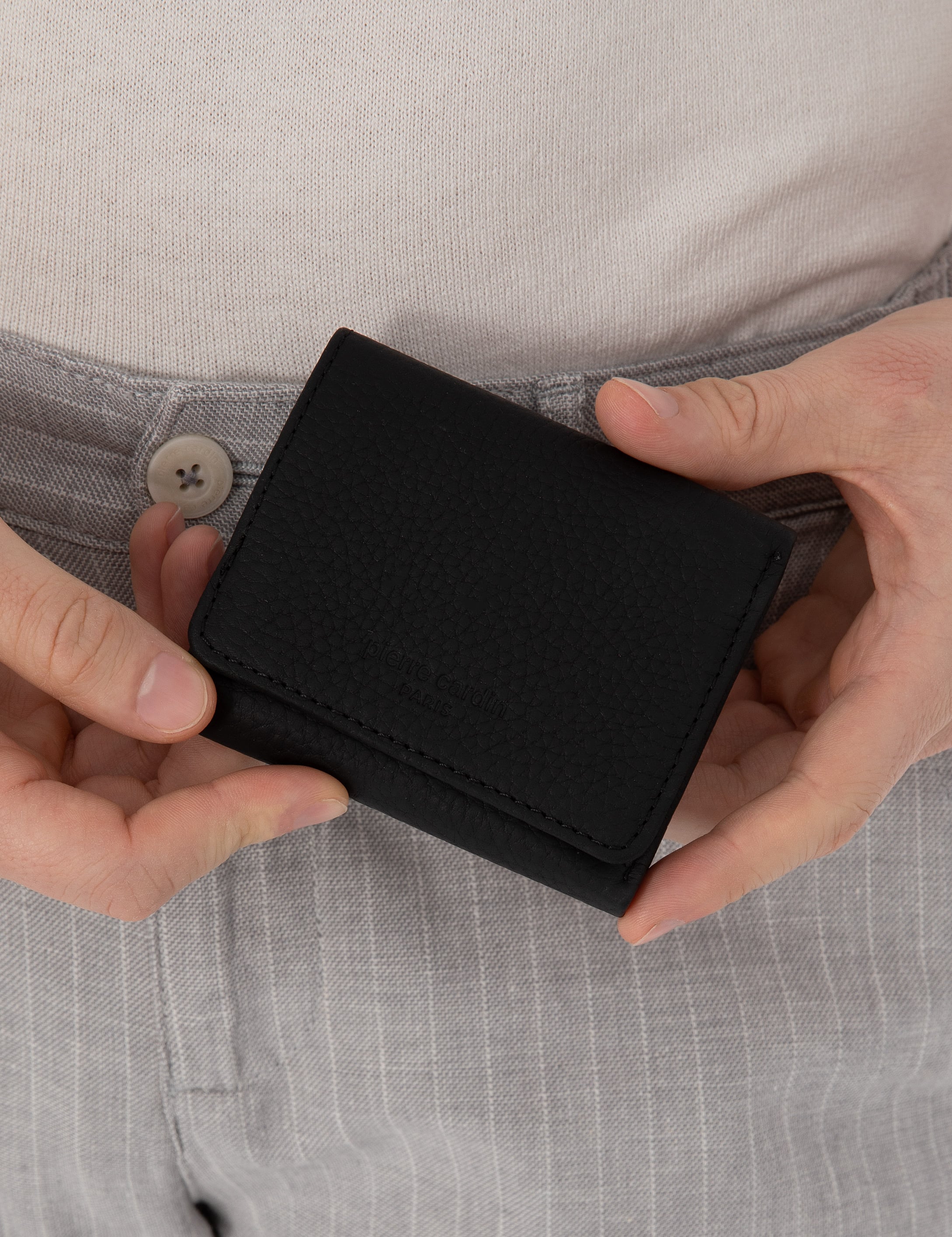 Pierre Cardin erkek cüzdan modelinde 6 adet kart bölmesi, 2 adet kağıt para bölmesi ve 1 adet şeffaf kimlik/ehliyet bölümü mevcuttur.