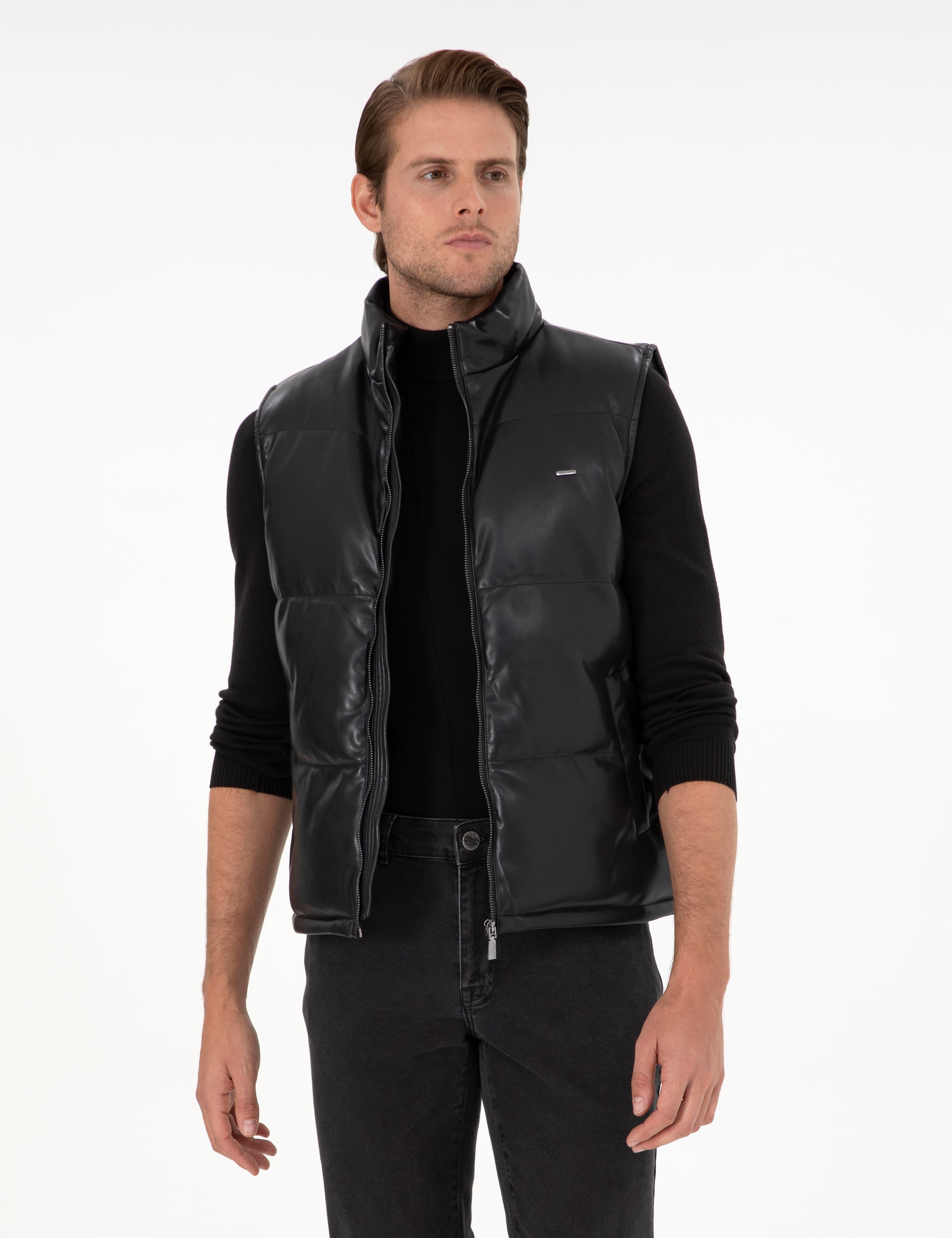 - Siyah Suni Deri Yelek