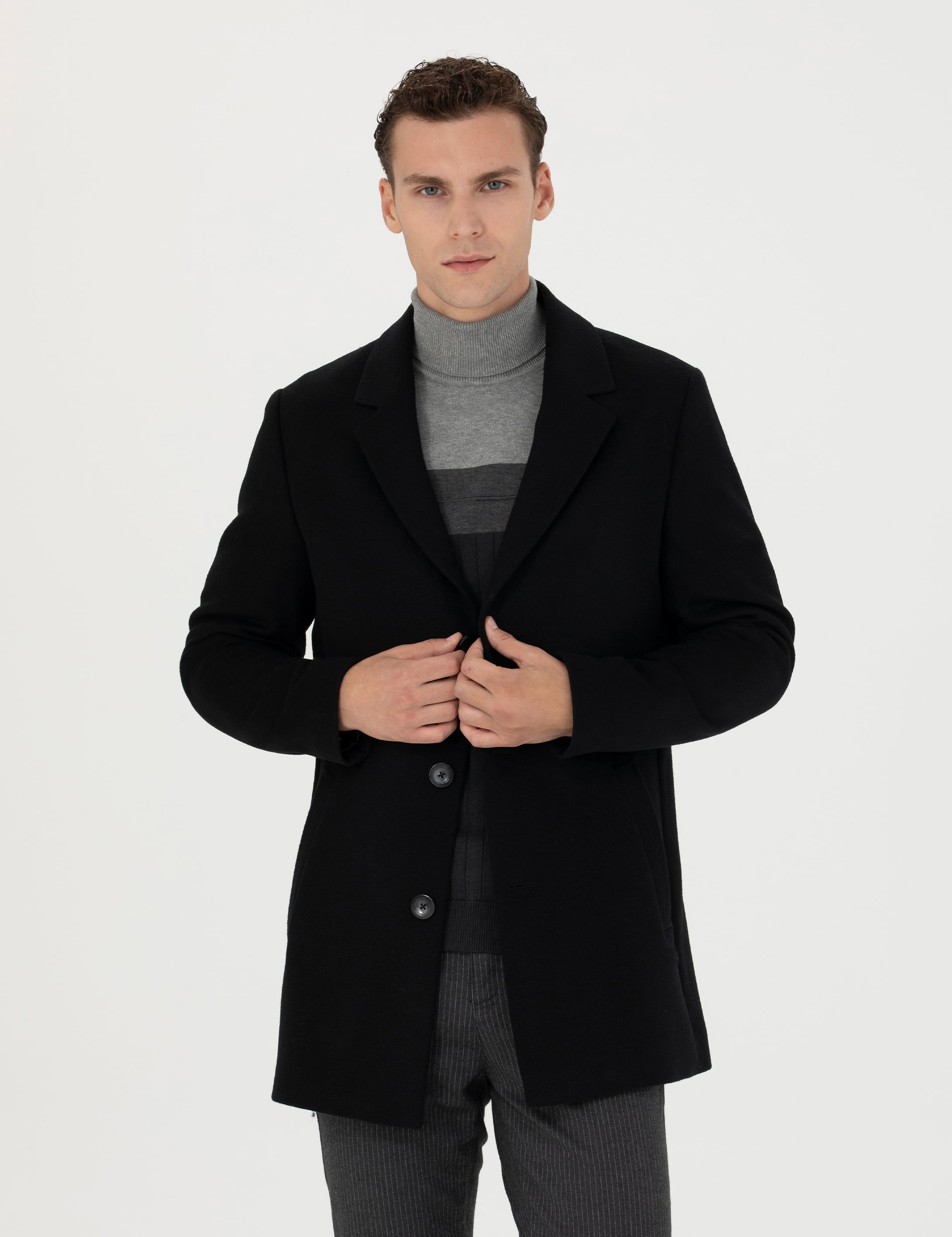 Siyah Ekstra Slim Fit Yün Karışımlı Kaşe Kaban