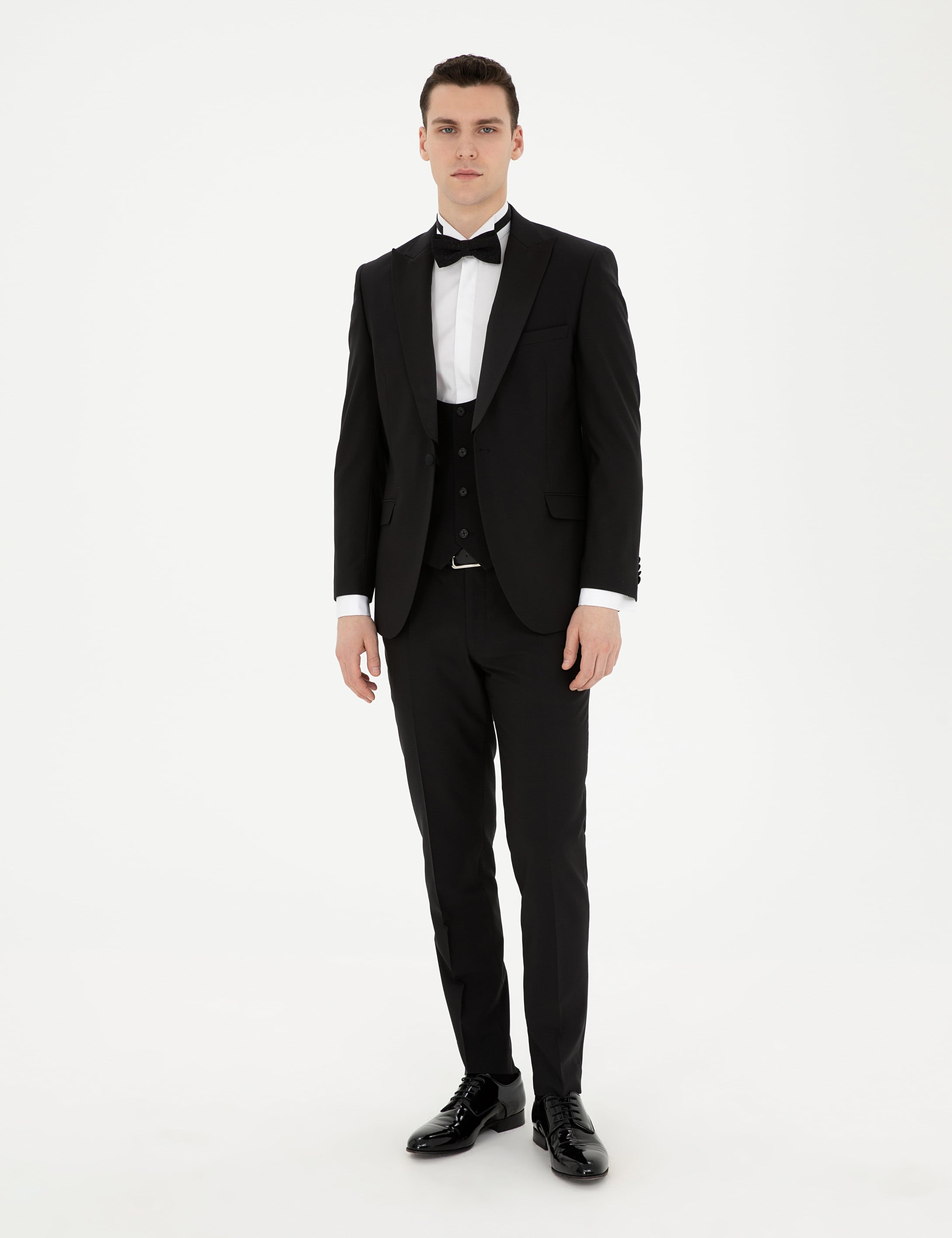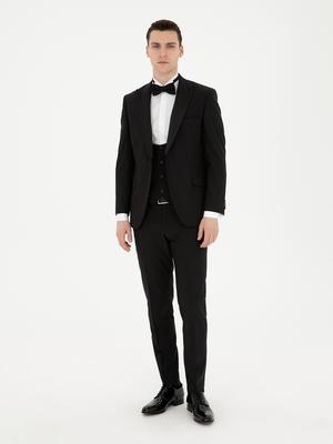 - Siyah Ex. Slim Fit Yelekli Smokin