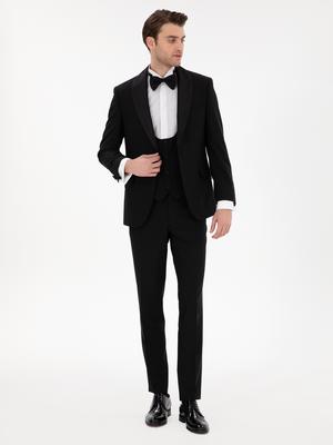 - Siyah Ex. Slim Fit Yelekli Smokin