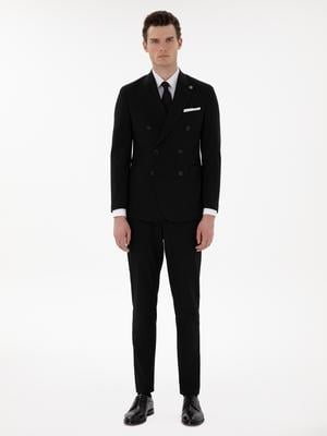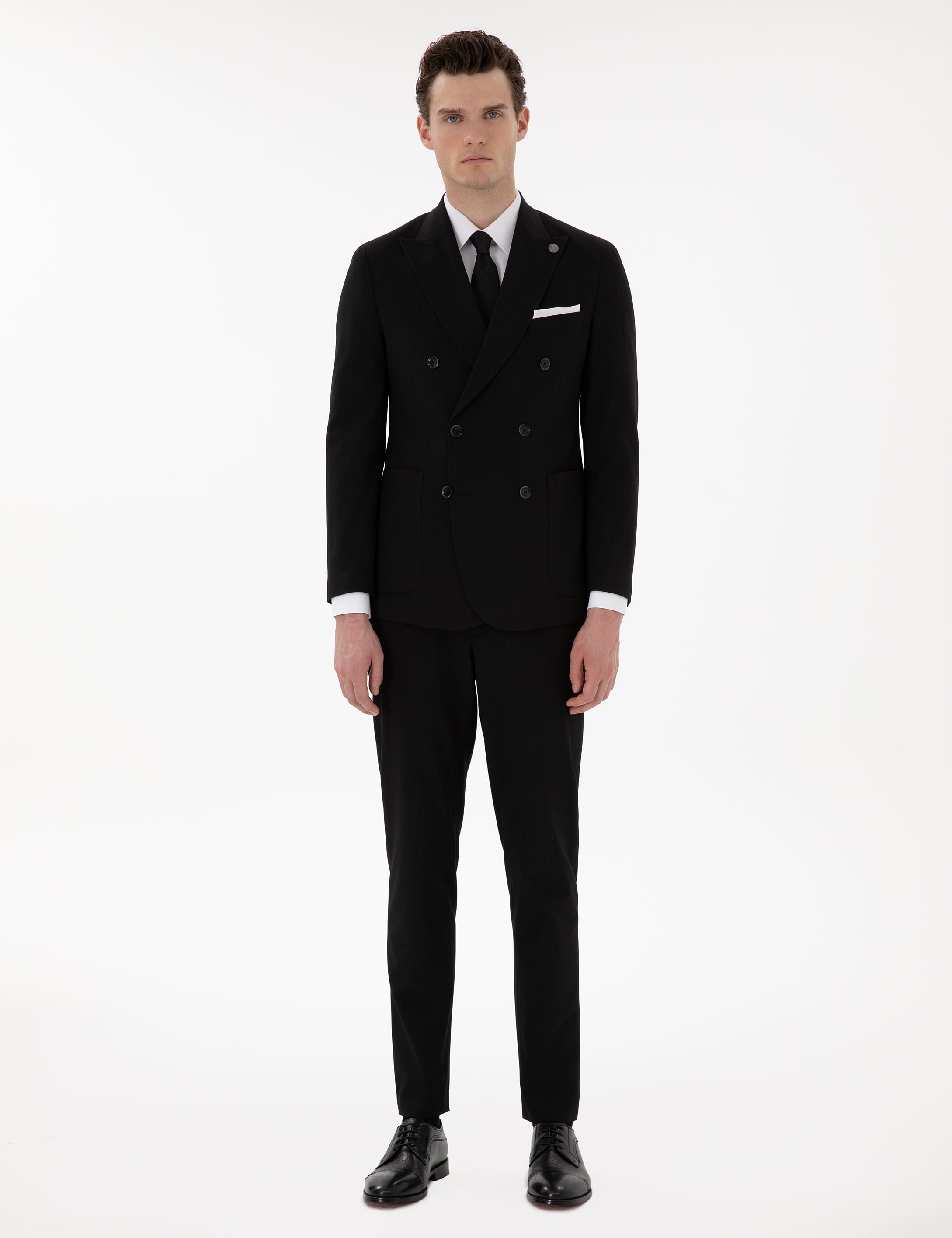 - Siyah Ex. Slim Fit Kruvaze Çizgili Takım Elbise
