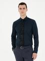 - Siyah Likralı Kolay Ütülenebilir Ex. Slim Fit Basic Gömlek