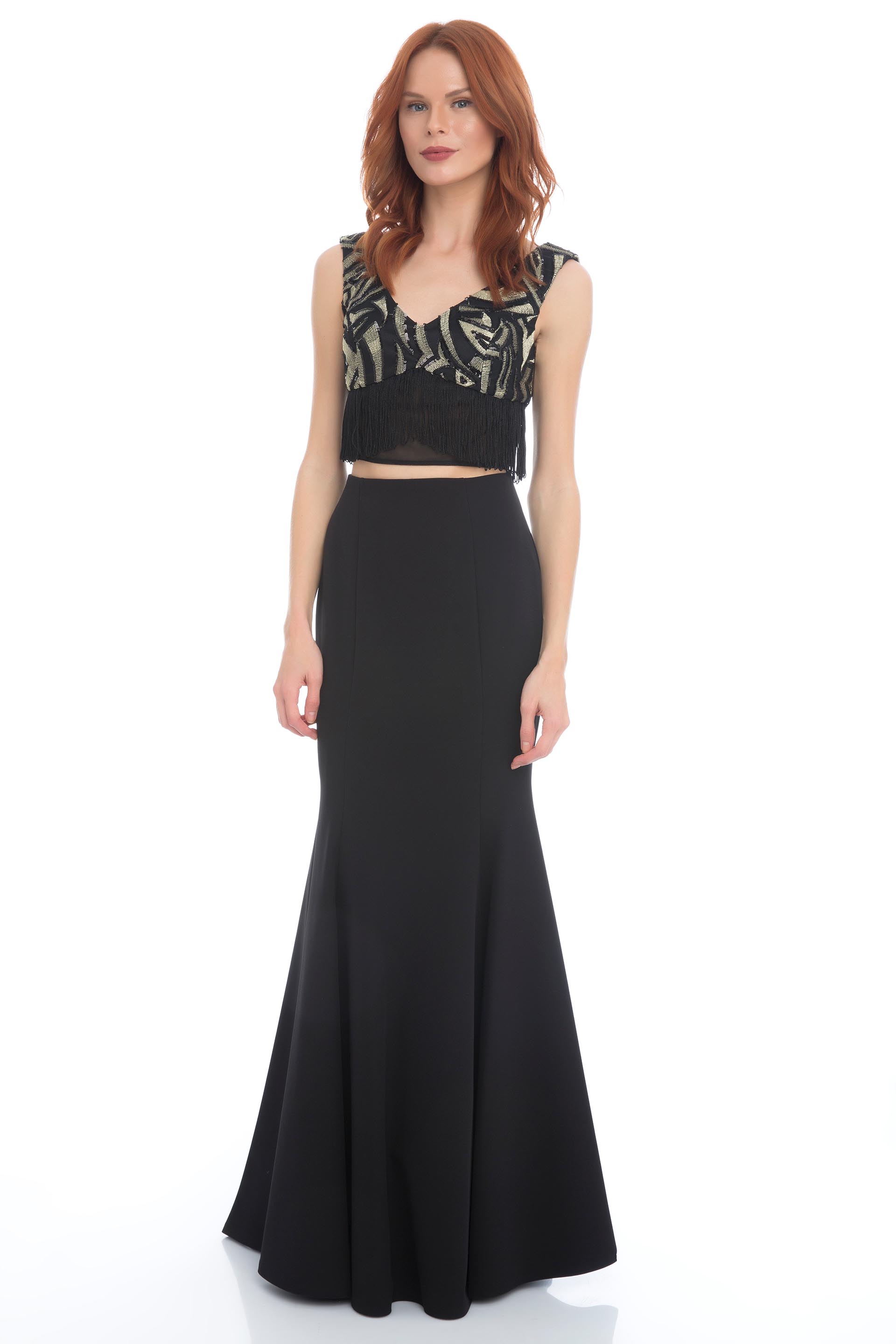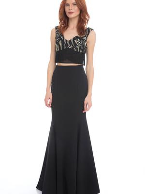 - Kol Boyu İkili Takım Balık Abiye Elbise