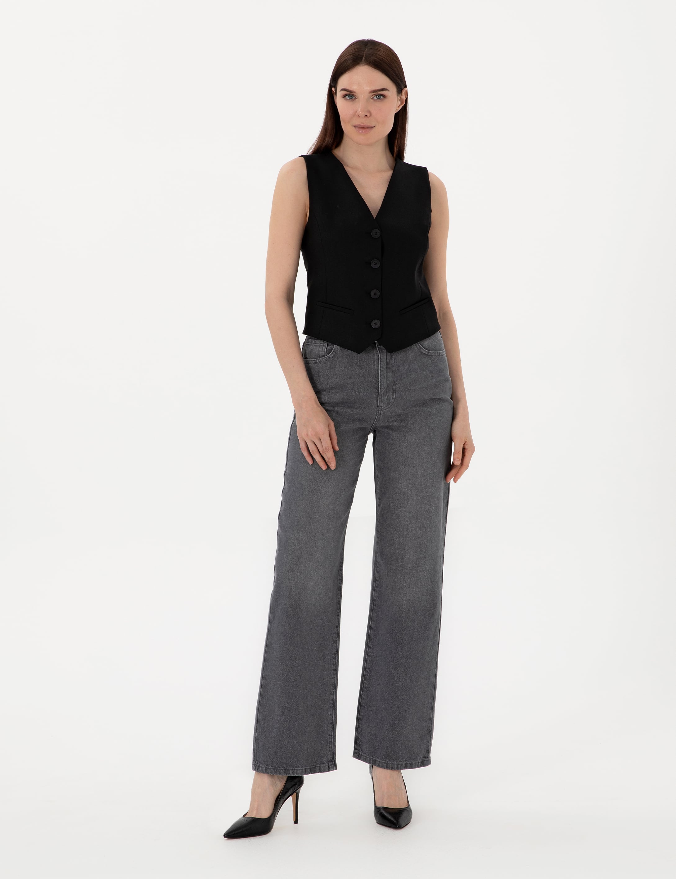 Antrasit High Waist Flare Fit Jean Pantolon