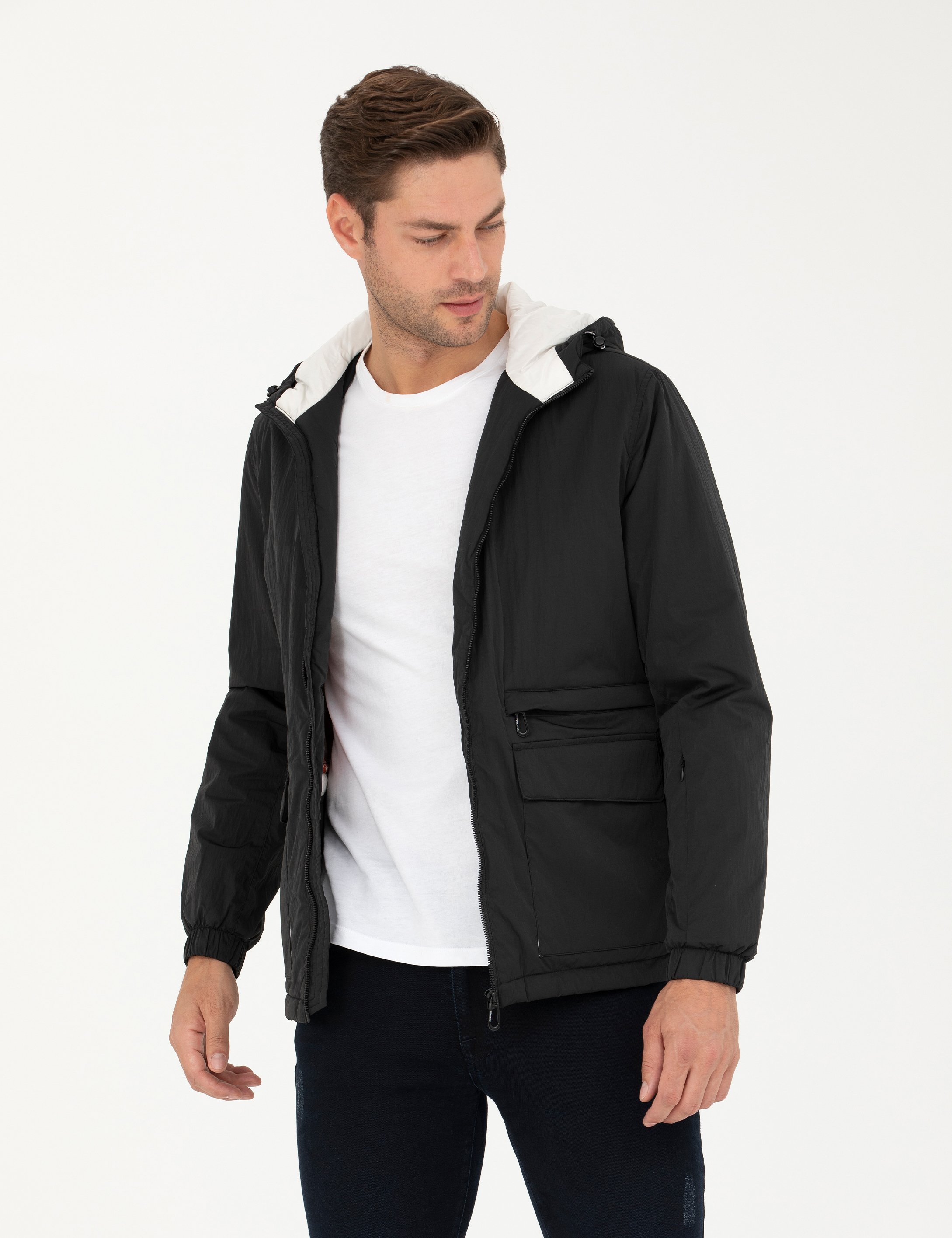 Siyah Kapişonlu Baharlık Mevsimlik Mont