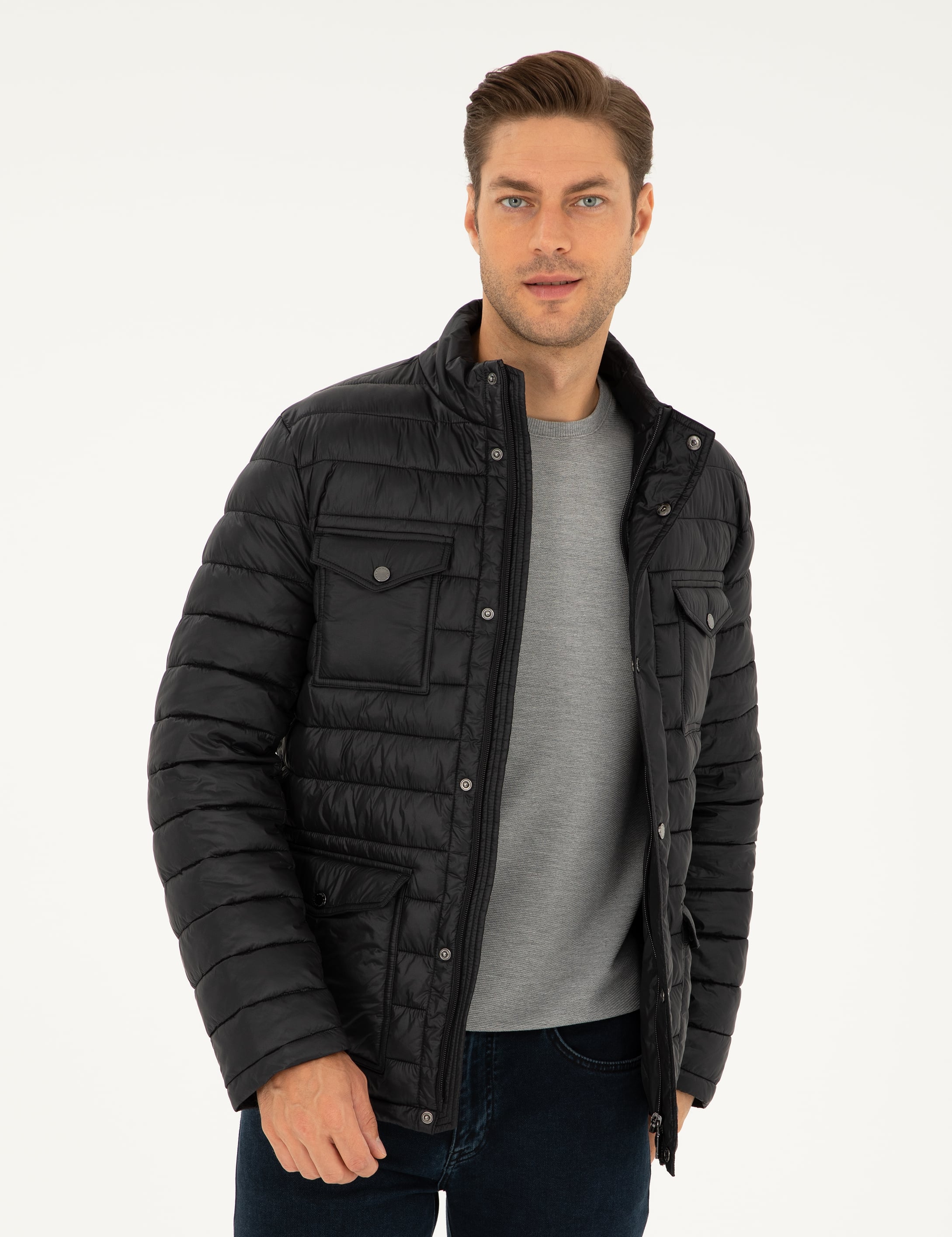 Siyahın sıcak tonlarıyla tasarlanmış mont, özellikle soğuk havalarda hem konforu hem de tarzı bir arada sunmaktadır. Kapitone deseni, montun görünümüne modern bir doku katarken, önden tam boy fermuar kapanışı ve düğme detayı ekstra koruma sağlamaktadır. Klasik yakası, sade bir şıklık sunarken, göğüs üzerindeki fermuarlı cep, hem işlevsel hem de estetik bir detay olarak göze çarpmaktadır. Montun fit kesimi, vücuda tam oturarak düzenli bir görünüm oluşturmakta ve montun hafif yapısı gün boyu rahatlık sunmaktadır.