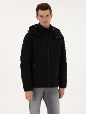 Siyah Kapüşonlu Şişme Mont