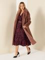 Yumuşak peluş dış yüzeyi, dokunulduğunda sıcaklık hissi verirken göz alıcı bir görünüm sunar. Kabanın geniş yakası, boyun bölgesini soğuktan koruyarak ekstra sıcaklık sağlar. İç kısmında yer alan astar, kabanın hafifliğini korurken aynı zamanda sıcak tutma özelliğini artırır. Kumaşın dayanıklılığı sayesinde uzun süre formunu korur ve kolay temizlenebilir. Kaban, sonbahar ve kış aylarında dış giyimde işlevsellik ve şıklığı bir arada arayanlar için ideal bir tercihtir.