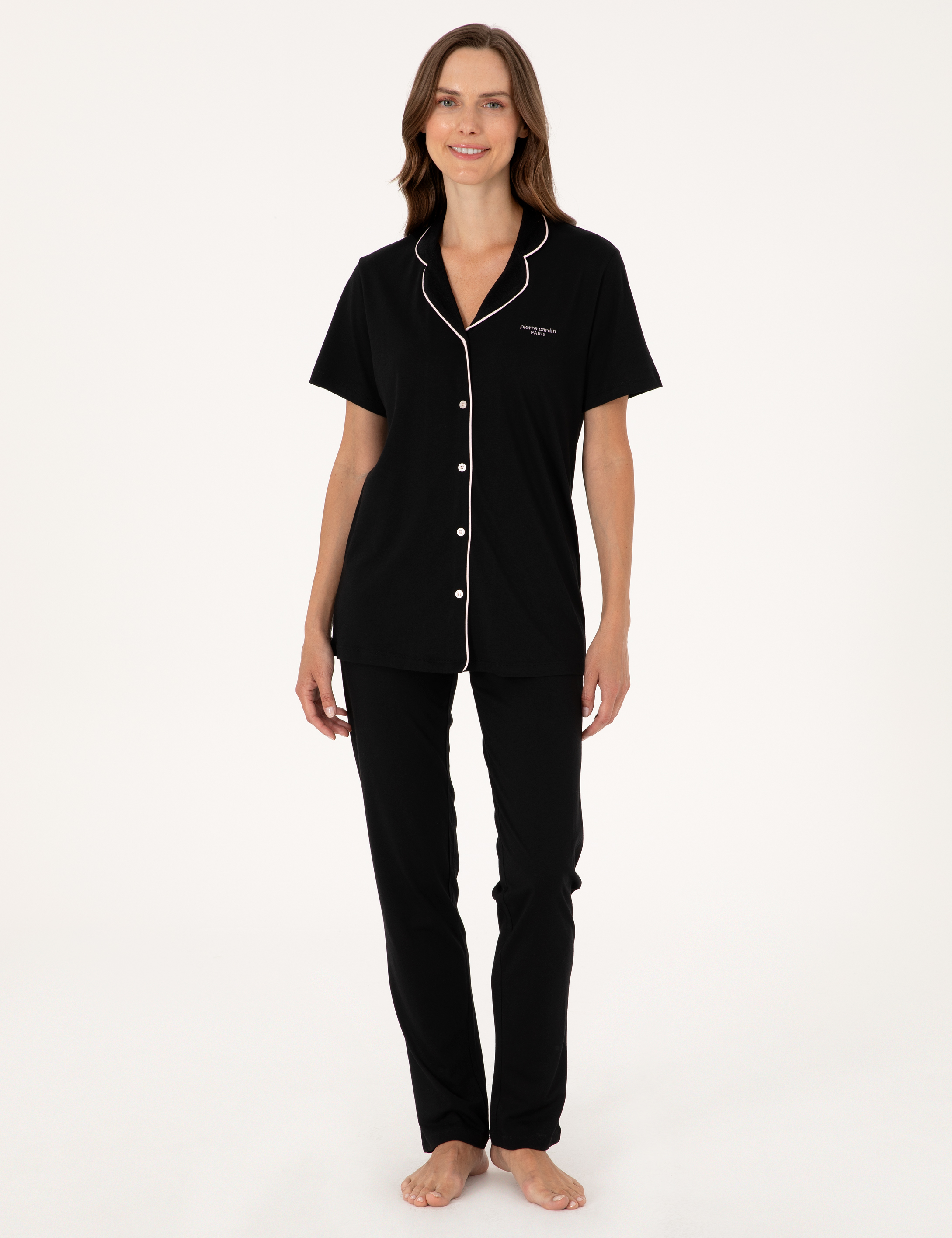 Siyah Kısakollu Gömlek Pijama Takımı