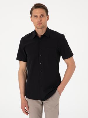 Siyah Basic Regular Fit Kısa Kollu Cepli Gömlek
