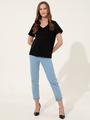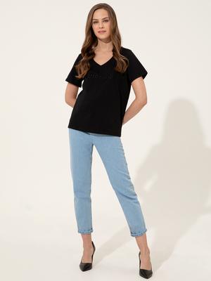Vücudunuzu terletmeden, cilt dostu bir kullanım sunan %100 pamuk v yaka kadın tişörtümüz anti-alerjiktir.