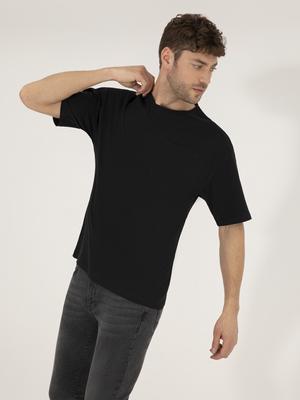 Siyah Regular Fit Düz Cepli Bisiklet Yaka Tişört