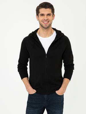 Siyah Regular Fit Fermuarlı Triko Hırka