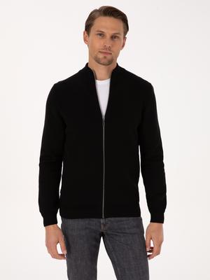 Siyah Regular Fit Fermuarlı Triko Hırka