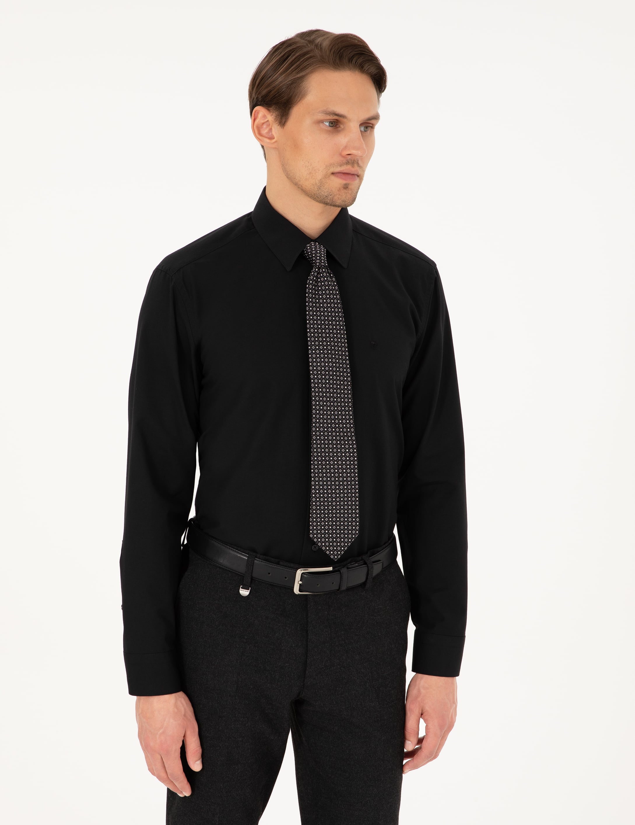 Siyah Regular Fit Uzun Kollu Basic Gömlek