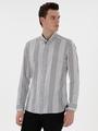 - Siyah Regular Fit Çizgili Uzun Kollu Gömlek