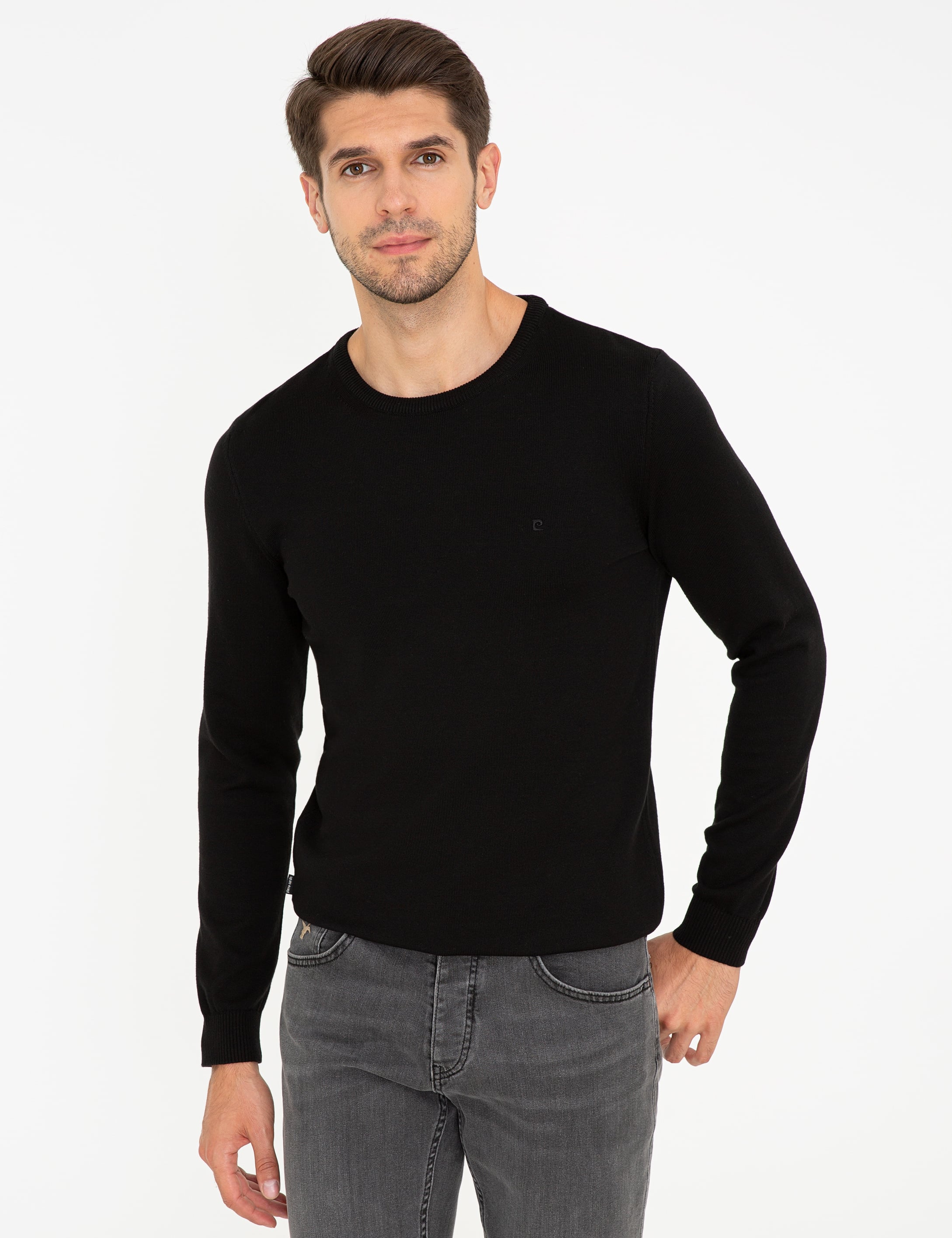 Siyah Slim Fit Bisiklet Yaka Basic Triko Kazak