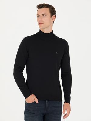 Siyah Slim Fit Yarım Balıkçı Yaka Basic Triko Kazak
