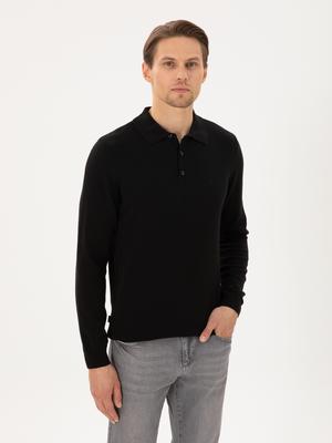 - Siyah Slim Fit Polo Yaka Basic Triko Kazak
