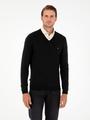 - Siyah Slim Fit V Yaka Basic Triko Kazak