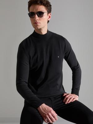 Siyah Slim Fit Yarım Balıkçı Yaka Basic Triko Kazak