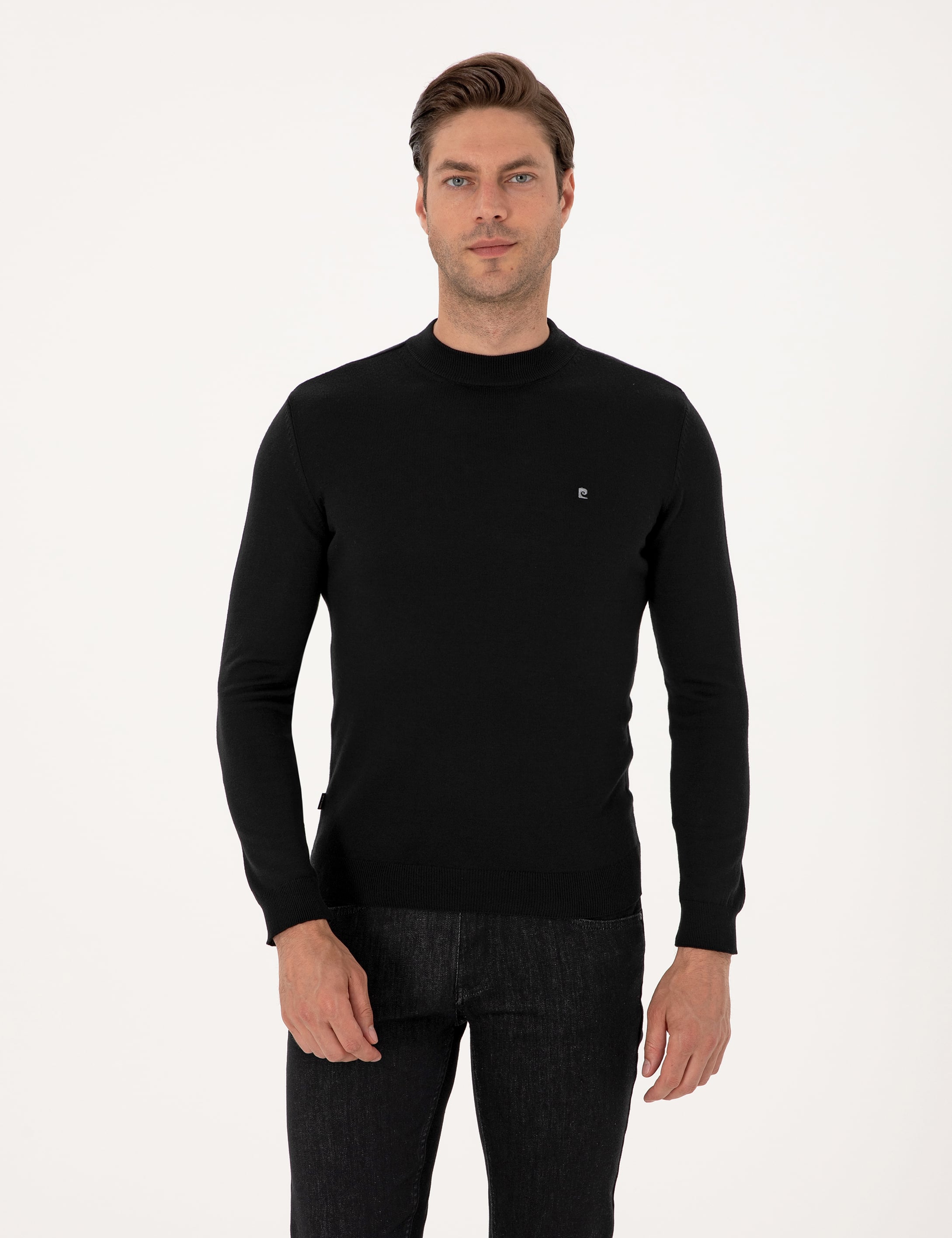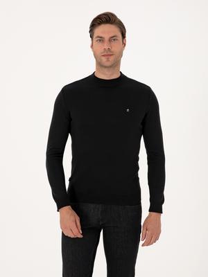 Siyah Slim Fit Çeyrek Yaka Basic Triko Kazak
