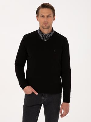 Siyah Slim Fit V Yaka Basic Triko Kazak