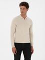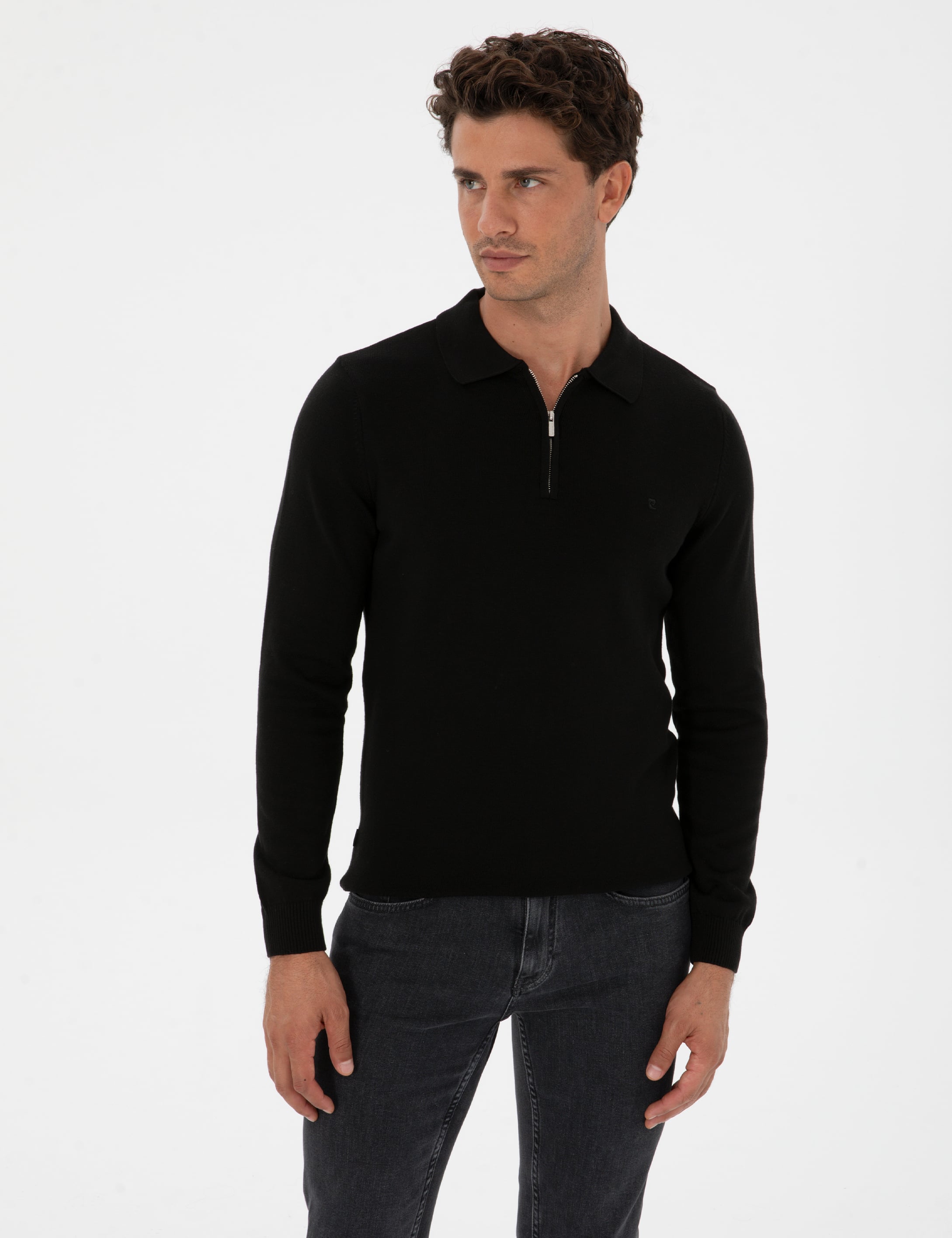 - Siyah Slim Fit Polo Yaka Fermuarlı Basic Triko Kazak