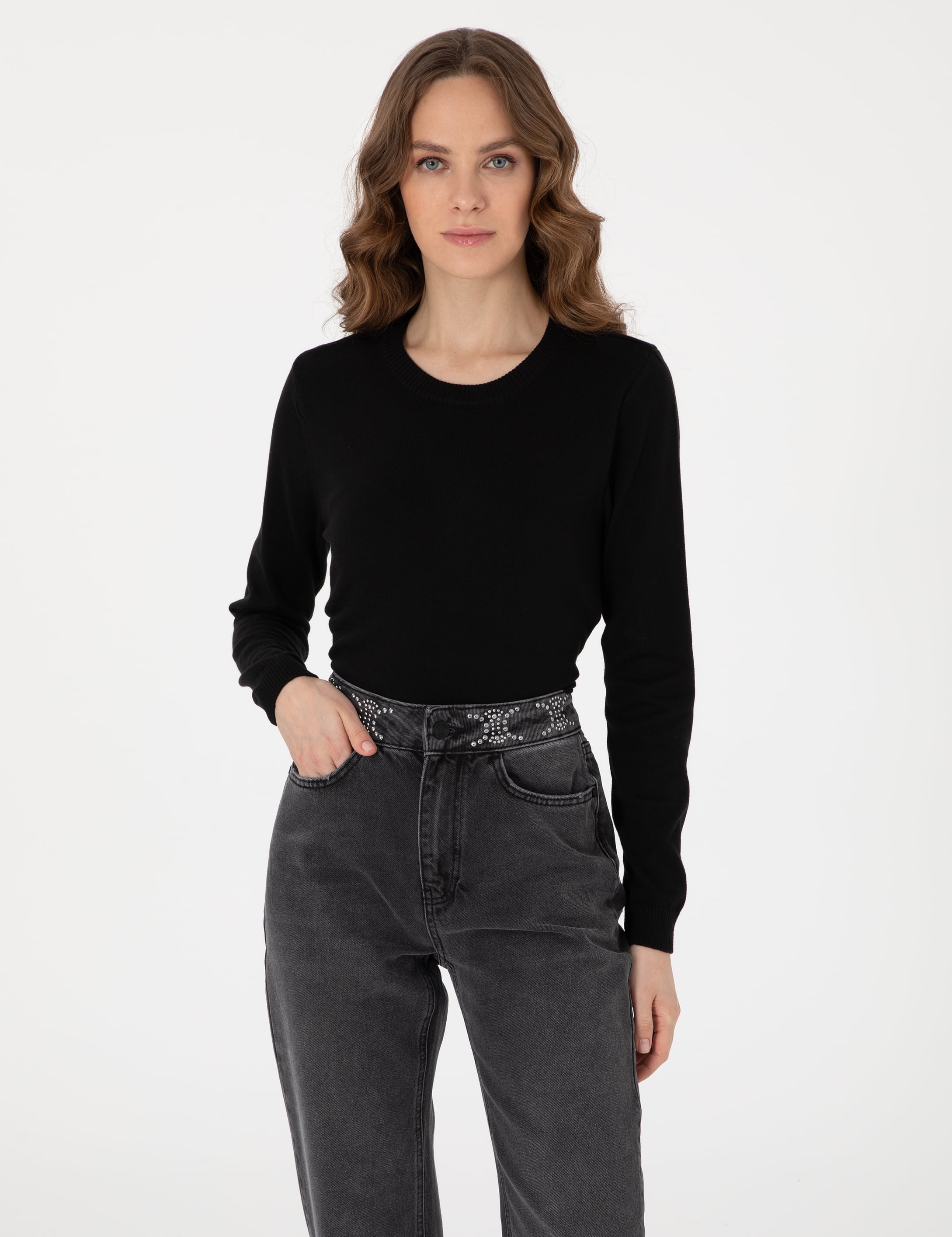Siyah Slim Fit Bisiklet Yaka Basic Kazak