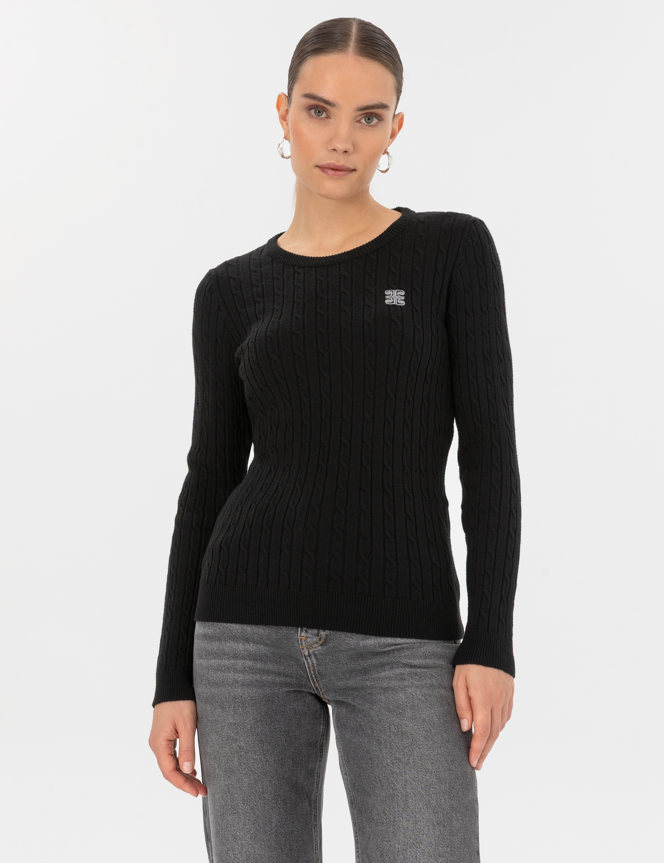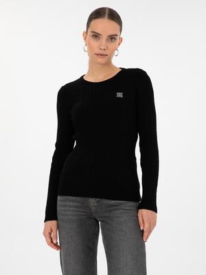 - Siyah Slim Fit Bisiklet Yaka Basic Kazak